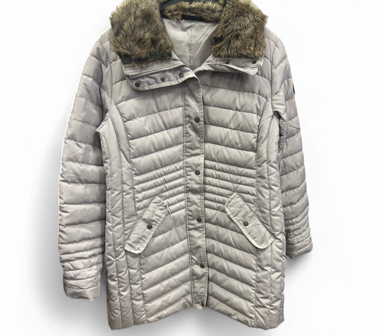 ❄️ Steppmantel Damen 44 Grau – Winterjacke mit Kunstfellkragen – Sehr gut! ❄️
