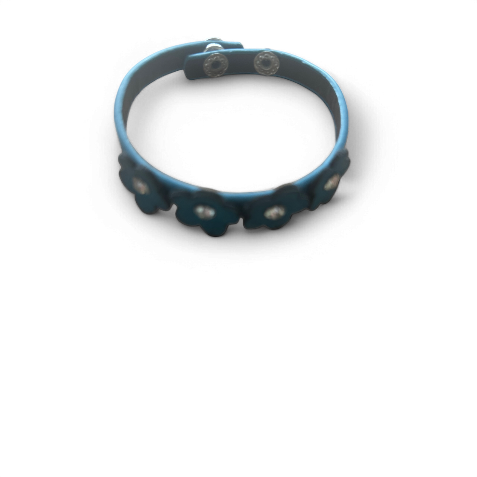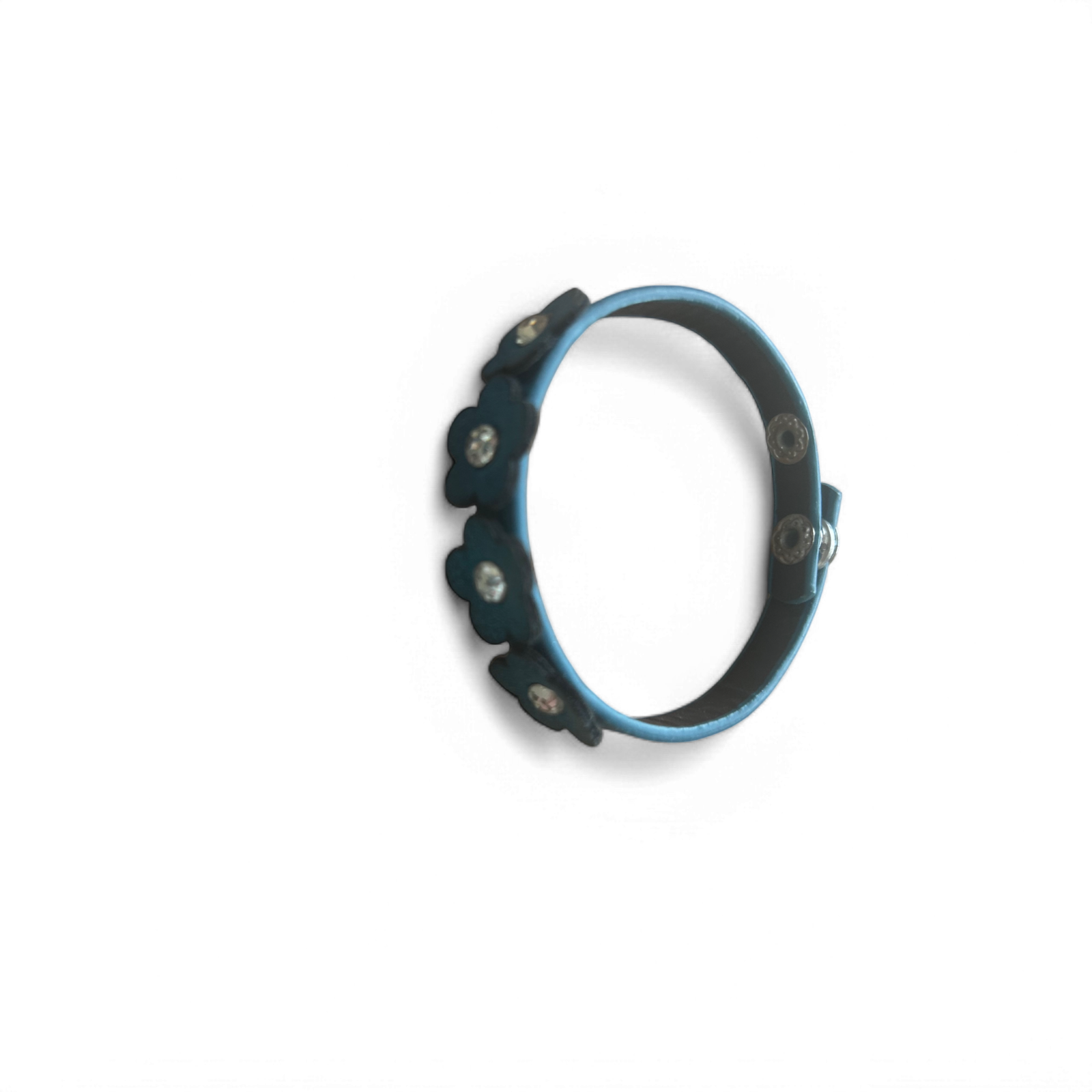 Elegantes Armband aus echtem Leder in Blau mit hübschen Blumenverzierungen und funkelnden Strasssteinen. Durch den verstellbaren Druckknopfverschluss passt es sich bequem dem Handgelenk an. Perfekt für den Alltag, besondere Anlässe oder als Geschenk!