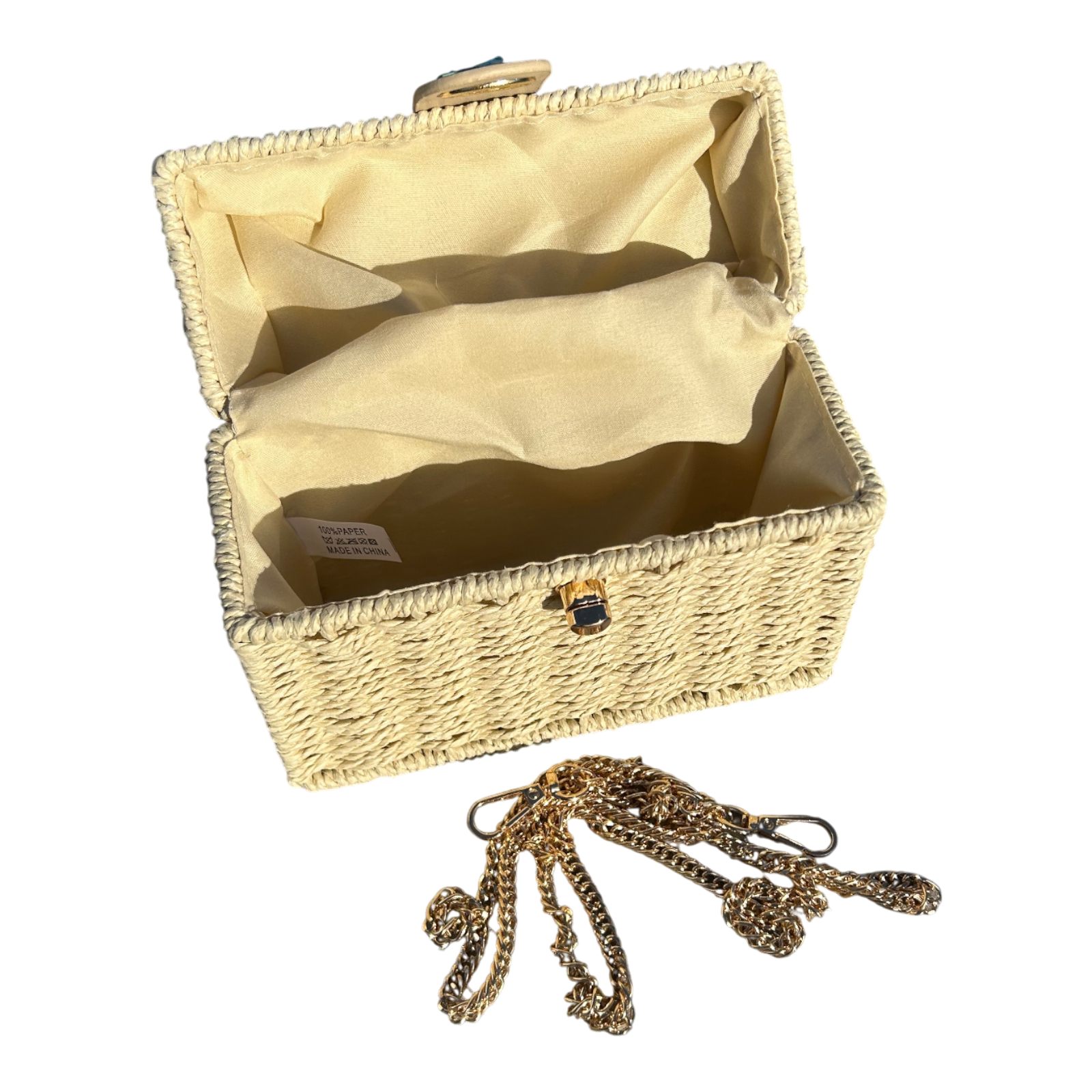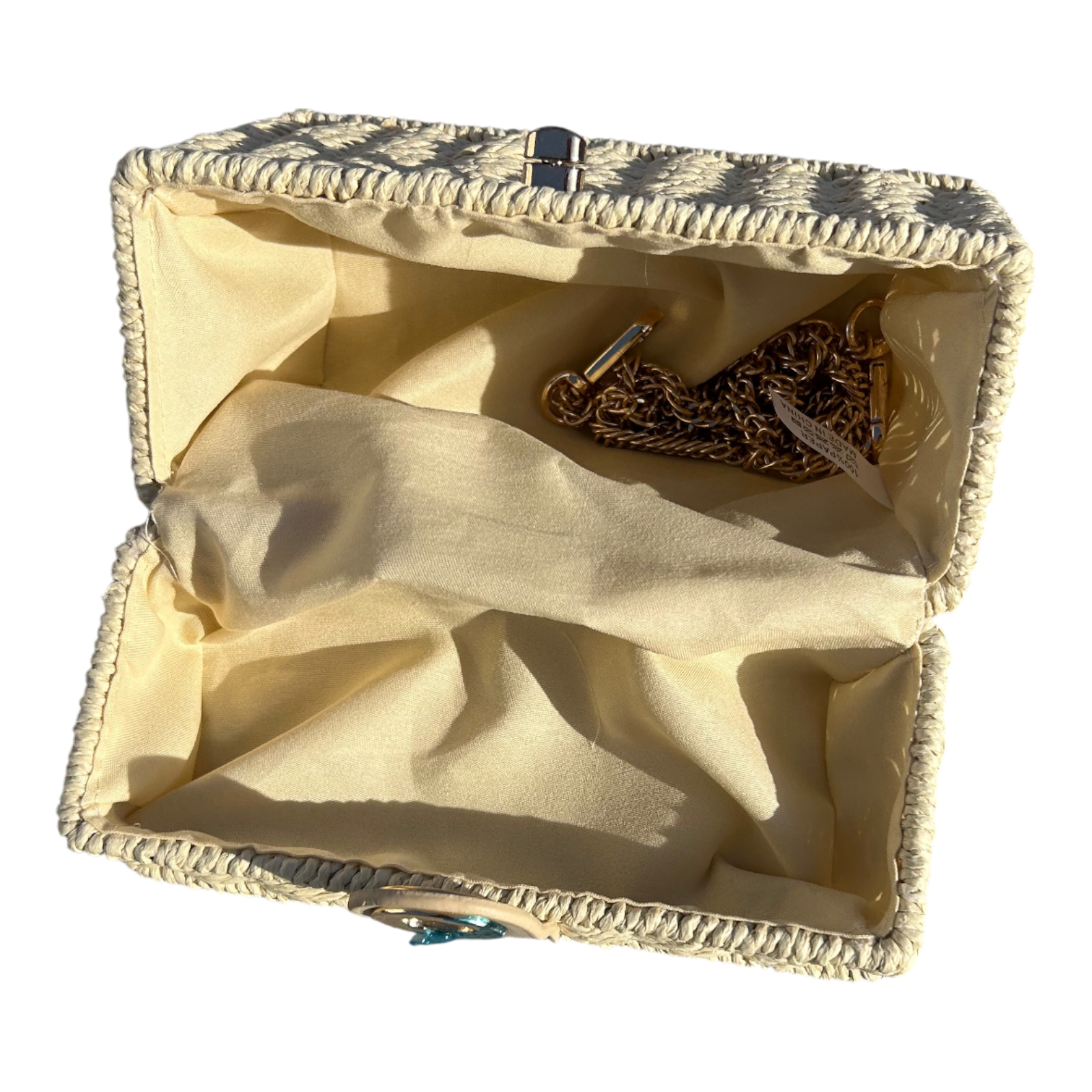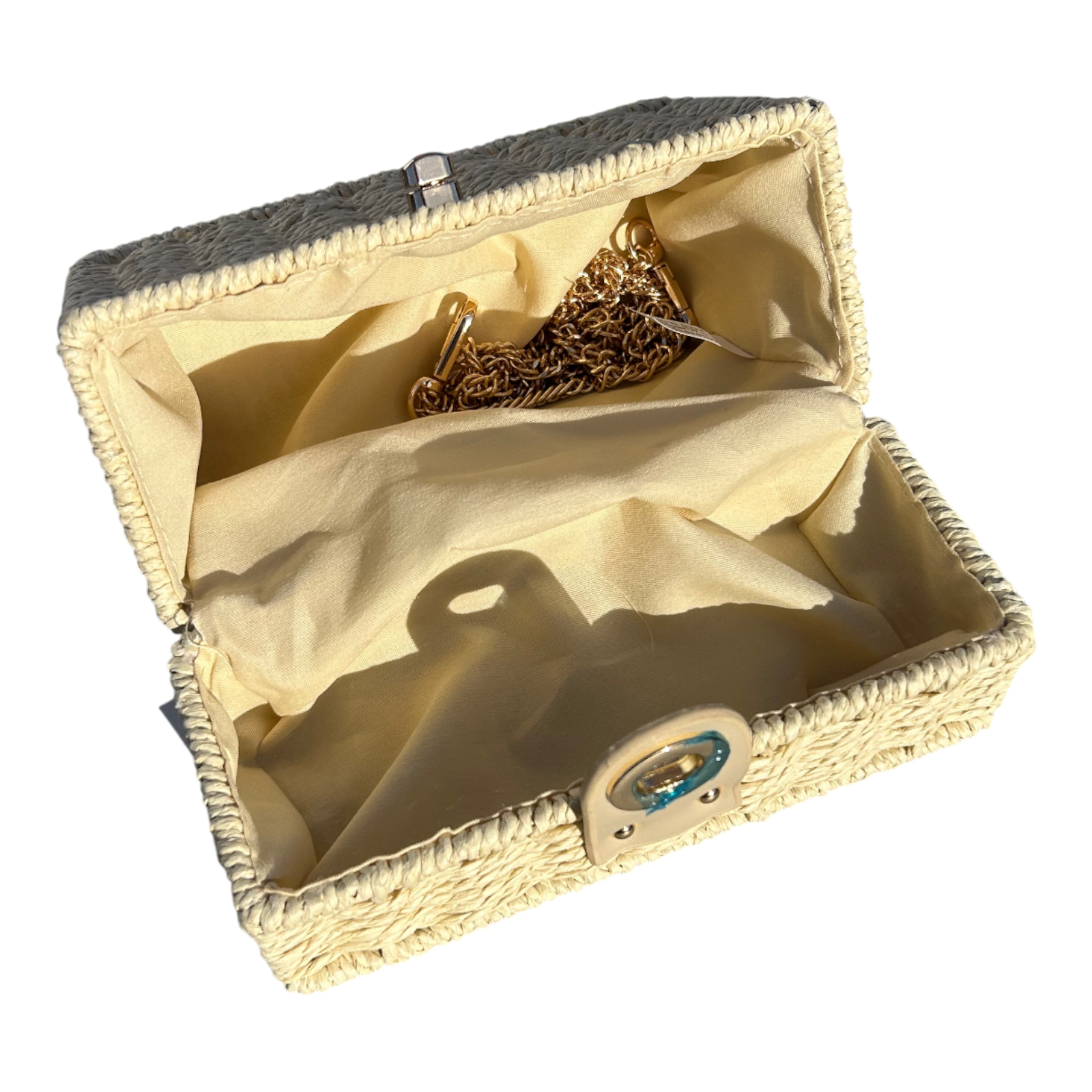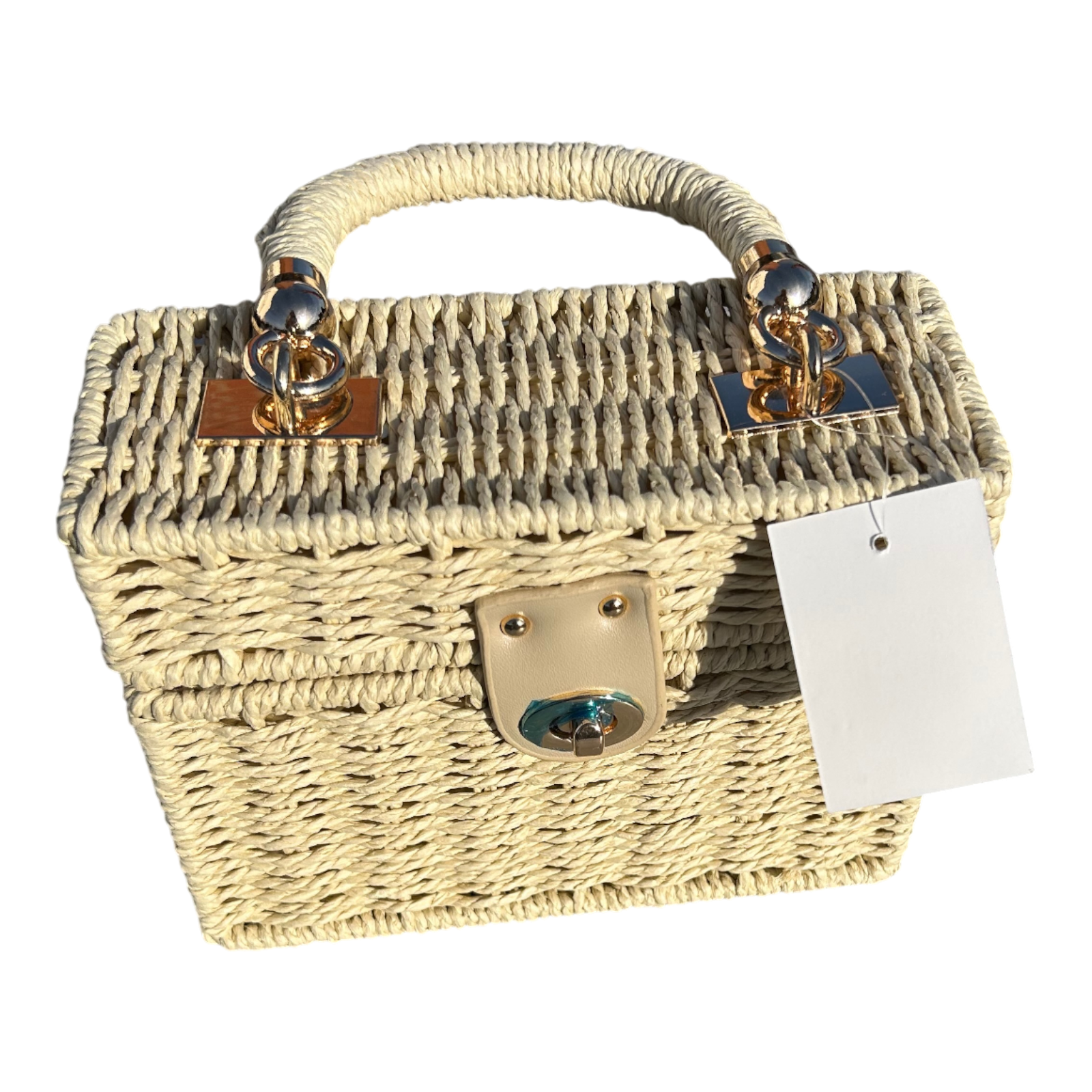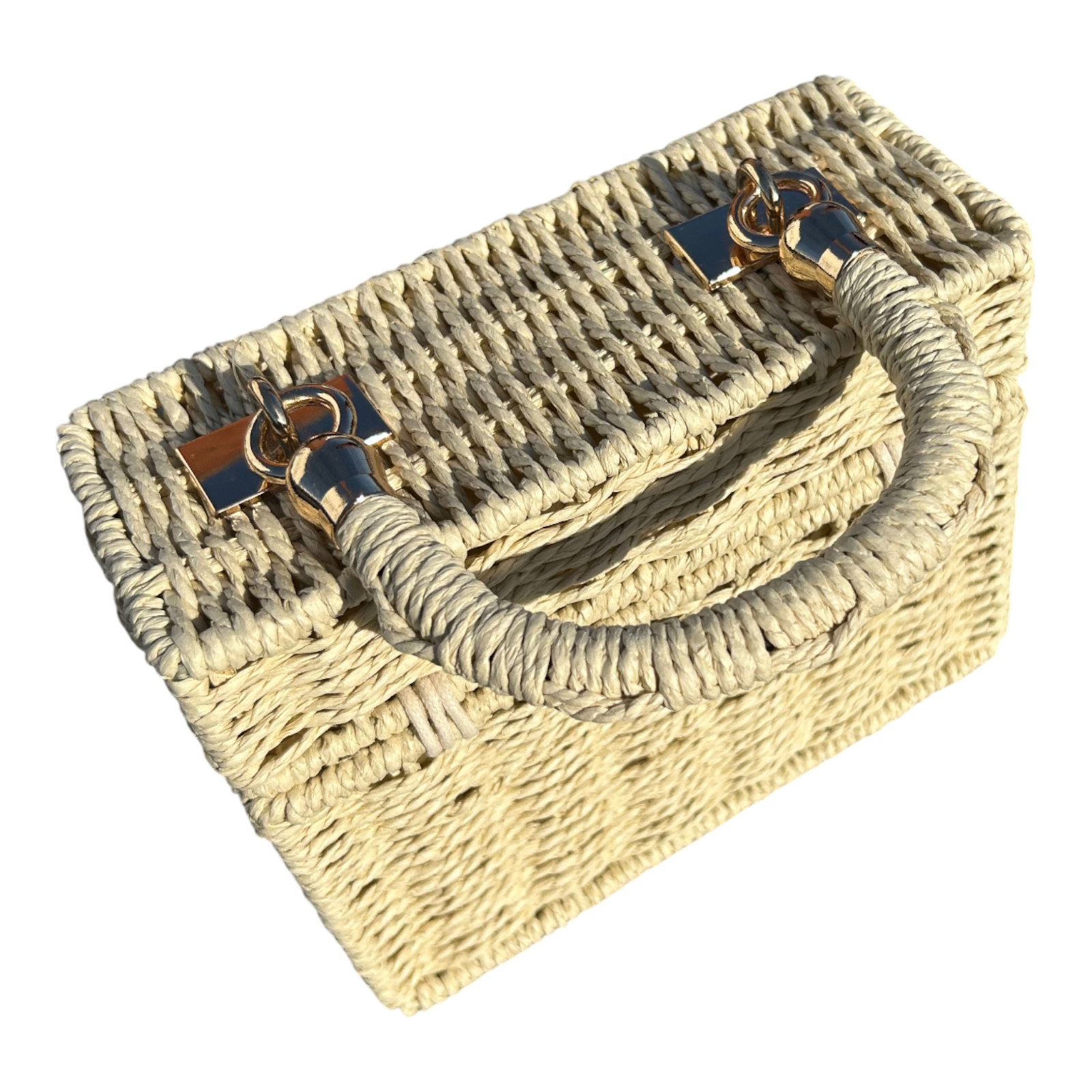 Strohtasche Sand Rechteckig Damen Tasche Sommer Korbtasche Drehverschluss Neu