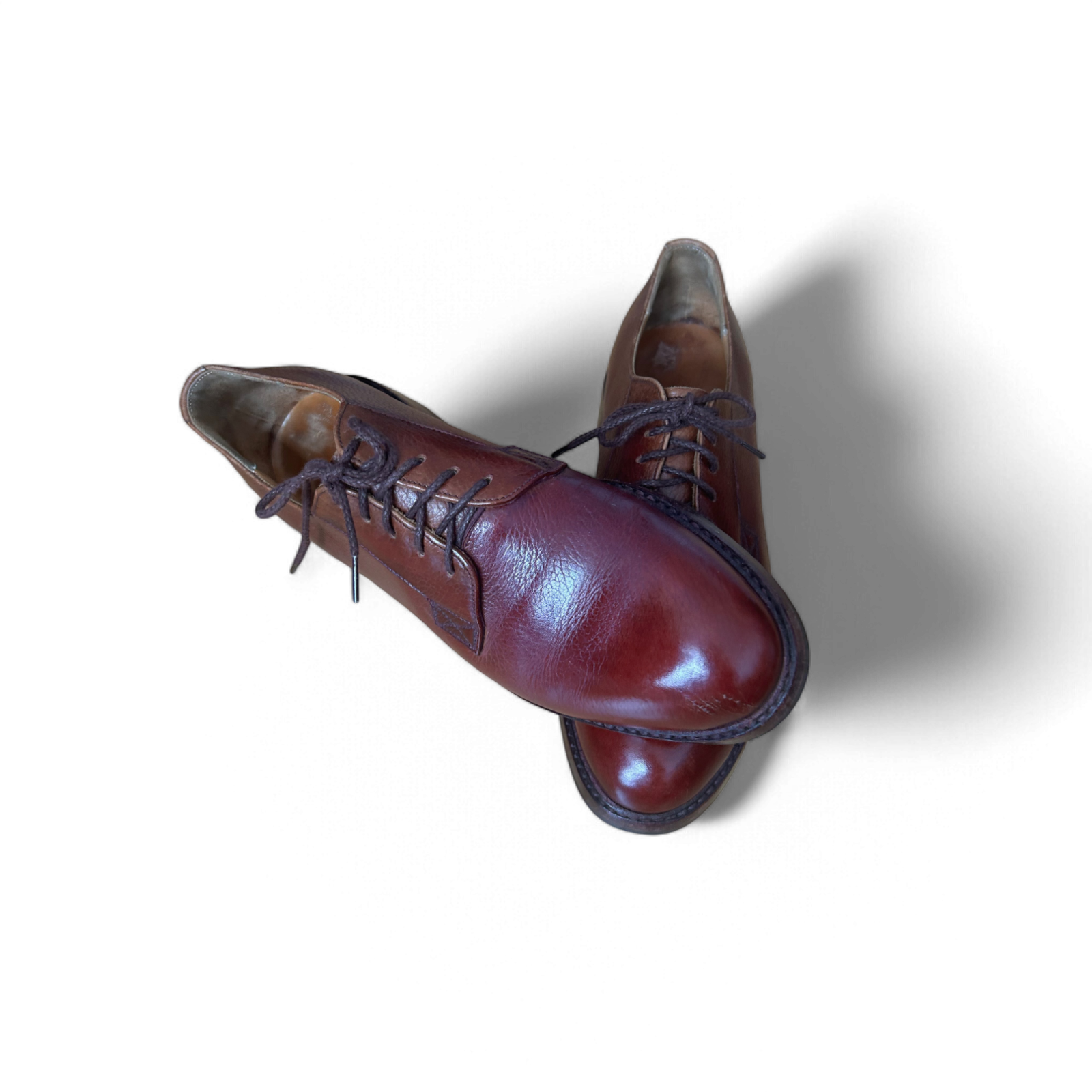 Eleganter Oxford-Schuh aus der American Collection – gefertigt für Brandt & Hof. Die Kombination aus glattem und strukturiertem Echtleder in warmem Kastanienbraun macht ihn zu einem echten Stilklassiker. Das Modell ist rahmengenäht, hochwertig verarbeitet und wurde nur wenig getragen. Geringe Tragespuren an der Innensohle, aber ansonsten in sehr gutem Zustand. Perfekt für Business, klassische Looks oder gepflegten Alltag. Ein Schuh für Kenner, Liebhaber und Freunde echter Handwerkskunst 🇺🇸🧵