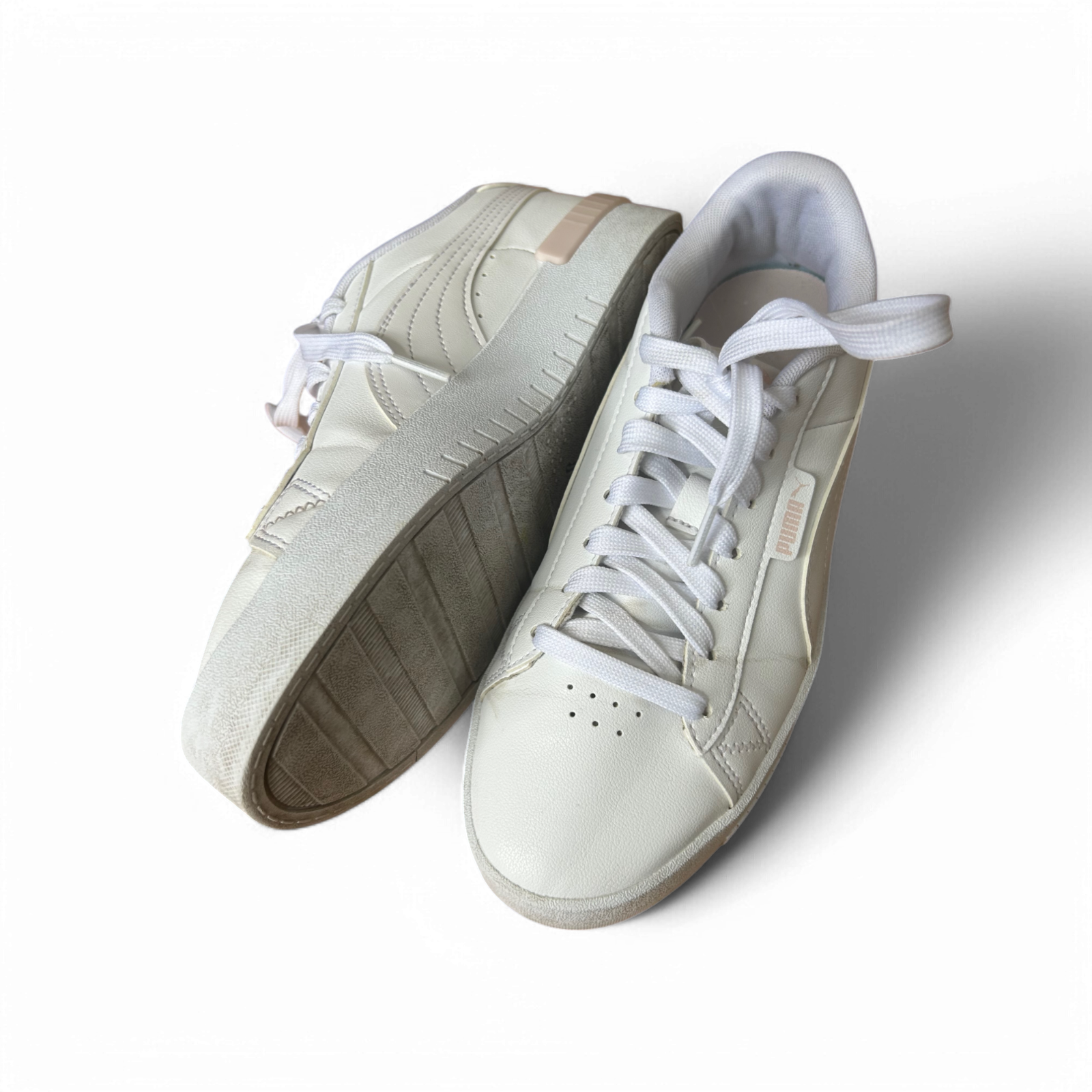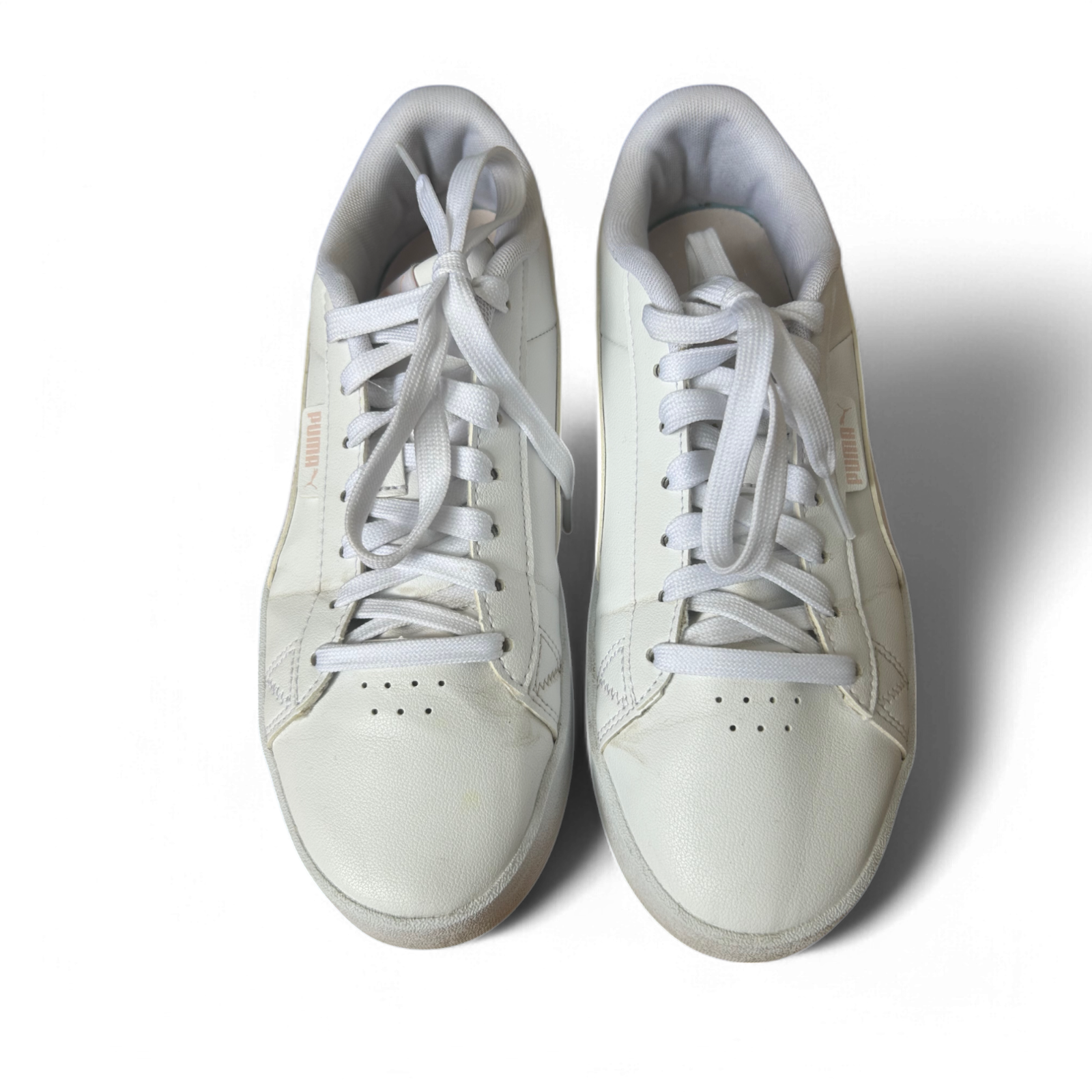 Weiße Sneaker von Puma in Größe 39 mit klassischem Design und hohem Tragekomfort. Der flache Schnitt, die robuste Gummisohle und das glatte Kunstleder machen sie zu einem vielseitigen Begleiter für Alltag und Freizeit. Die Schnürung sorgt für optimalen Halt, während das schlichte Design zu vielen Outfits passt 👟✨ Die Schuhe sind gebraucht, aber in gutem Zustand und bereit für viele weitere Schritte 🌿☀️