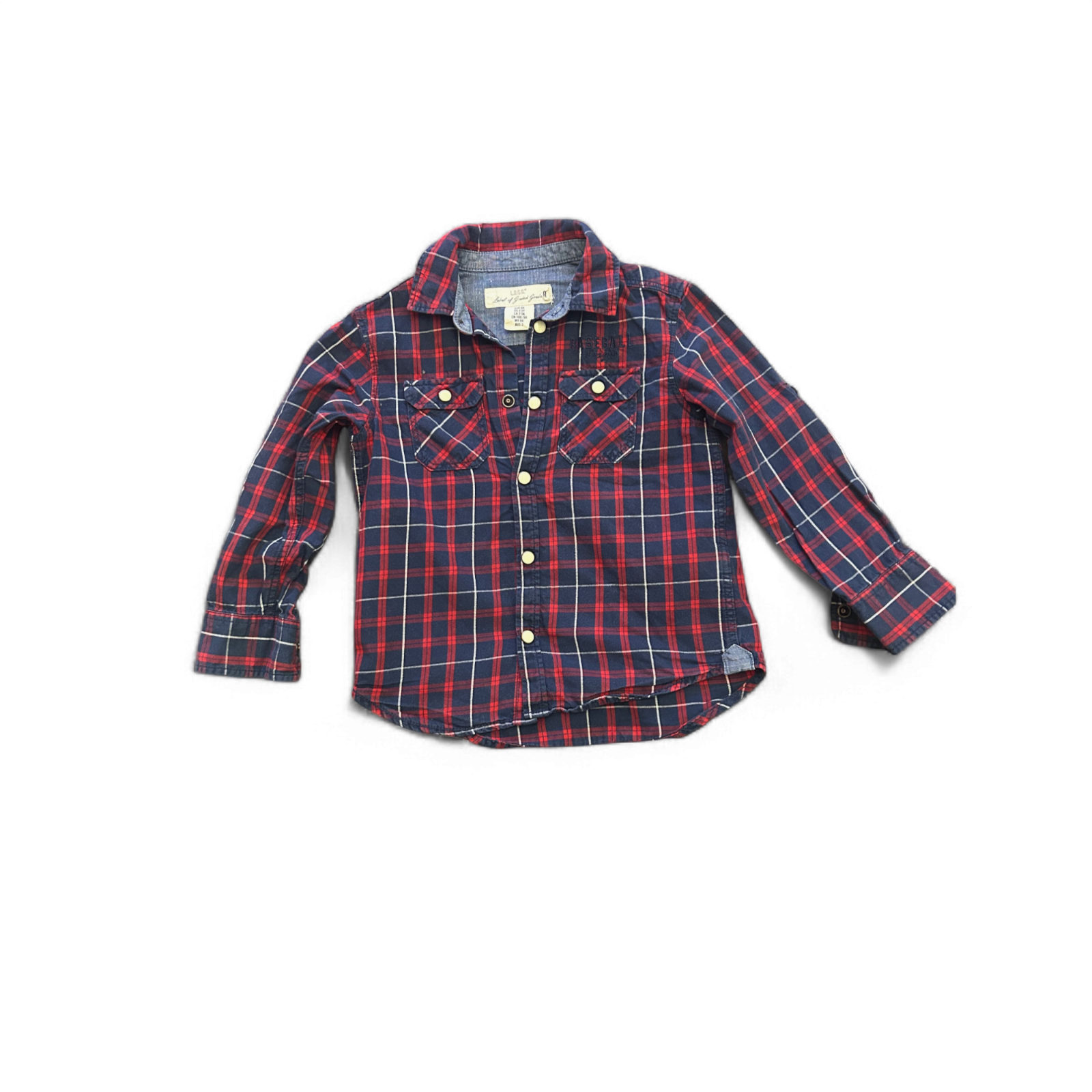 H M Kinder Hemd Gr 98 Kariert Rot Blau Baumwolle Langarm Freizeit