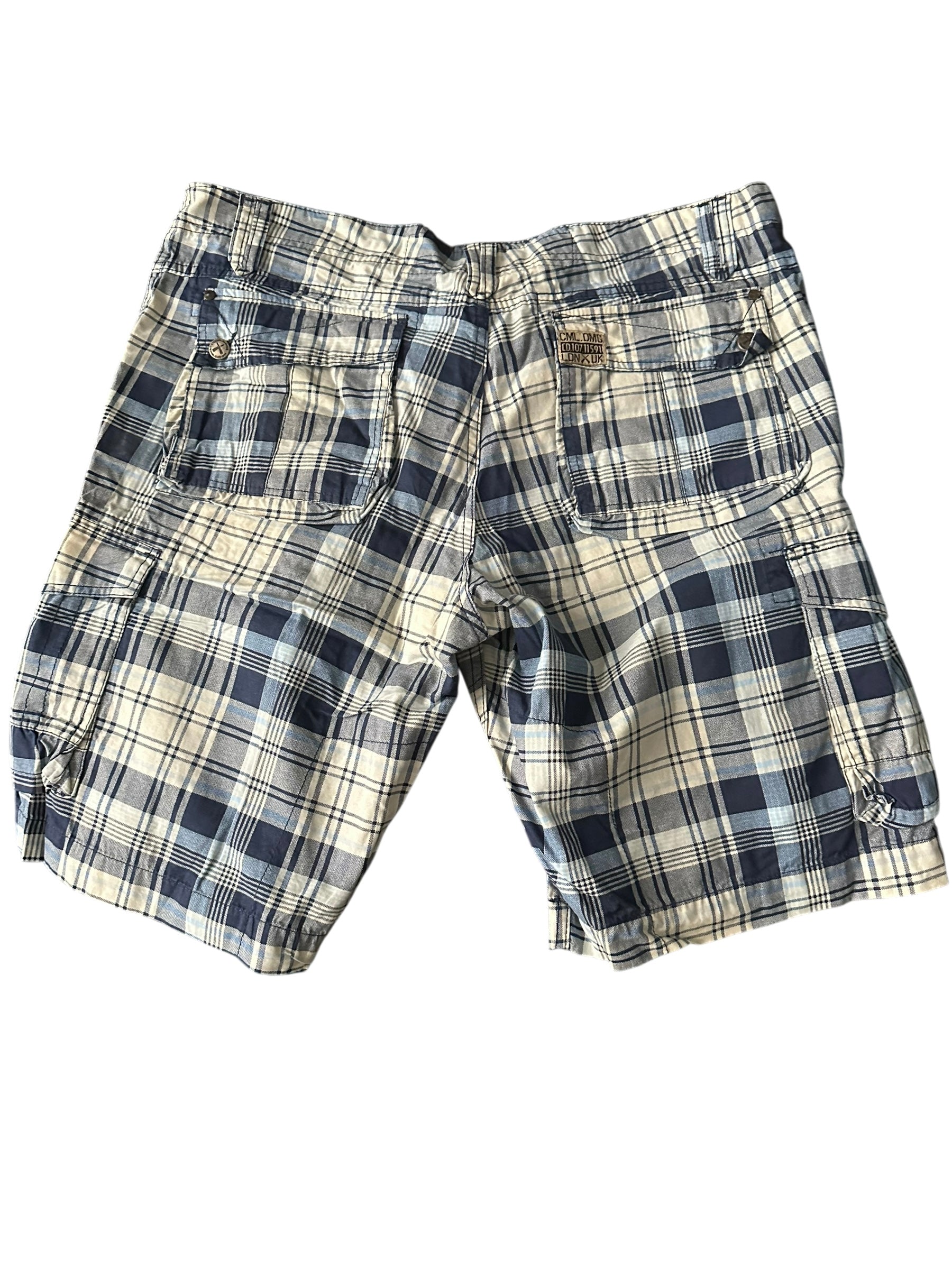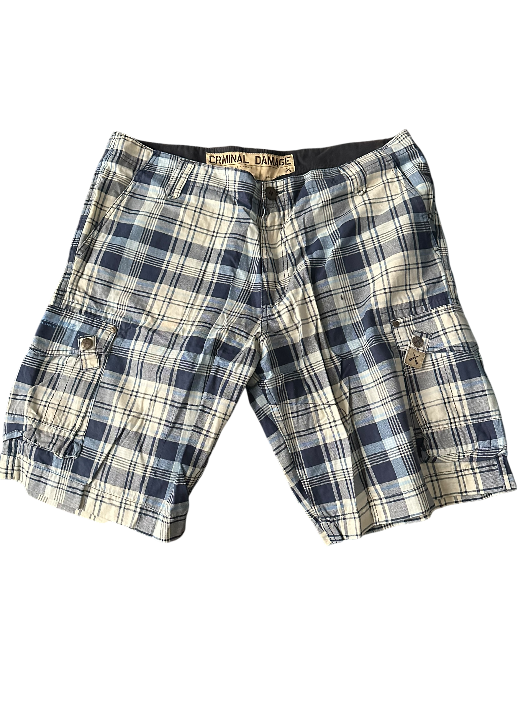 Stylische kariert gemusterte Shorts von Criminal Damage in hellblauem Design. Gefertigt aus 100 % Baumwolle, bietet sie ein angenehmes Tragegefühl und hohen Komfort. Der Knopfverschluss sorgt für einen klassischen Look, während die Seitentaschen mit Knopfverschluss praktischen Stauraum bieten. Mit einer Hosenlänge von 54 cm ideal für Freizeit, Alltag oder Sommerausflüge.