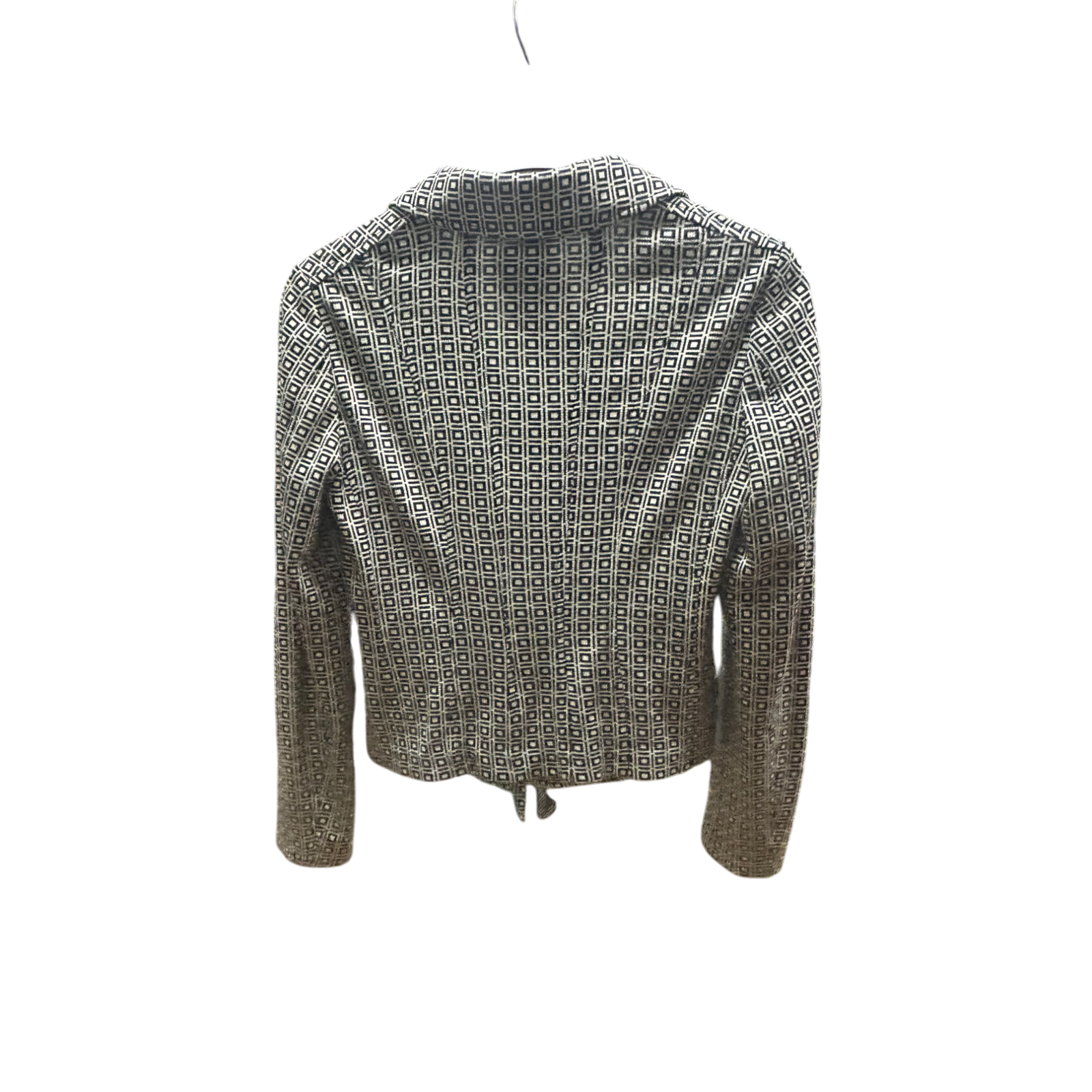 Stilvoller Damen-Blazer mit geometrischem Schwarz-Weiß-Muster, der sich perfekt für Business, Freizeit oder besondere Anlässe eignet. Der kurze, taillierte Schnitt betont die Figur und sorgt für einen modernen, eleganten Look.