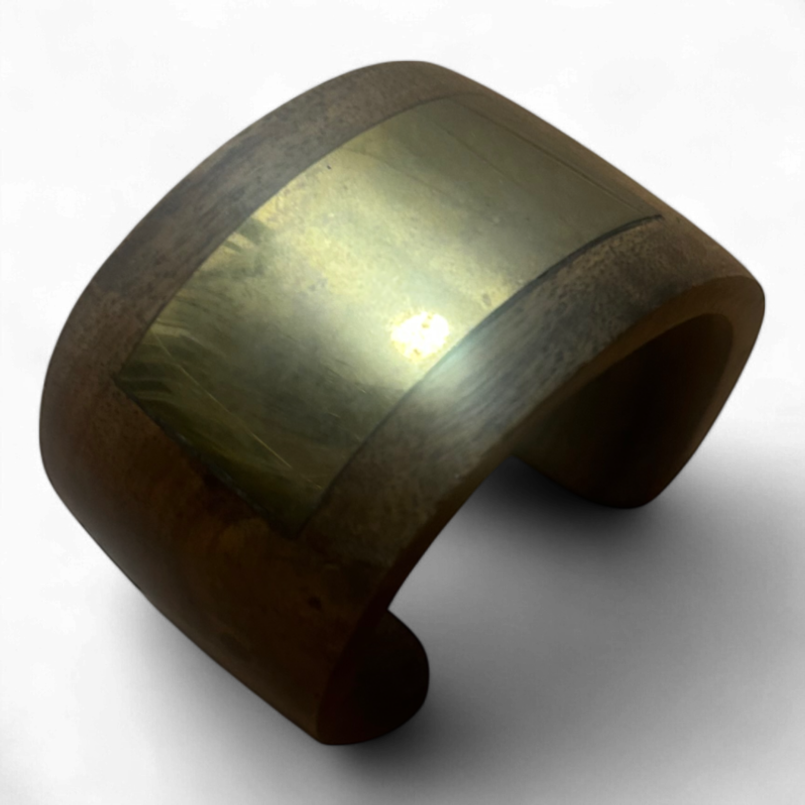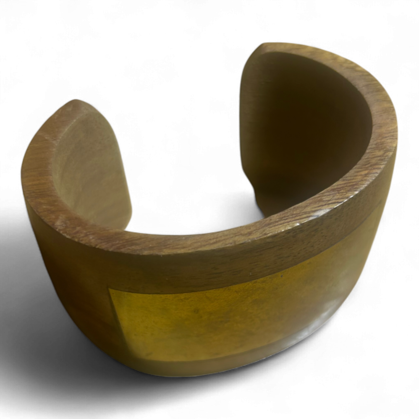 Armreif Holz Messingplatte Vintage Handgemacht Breit 5,5 cm Umfang 22 cm Offen