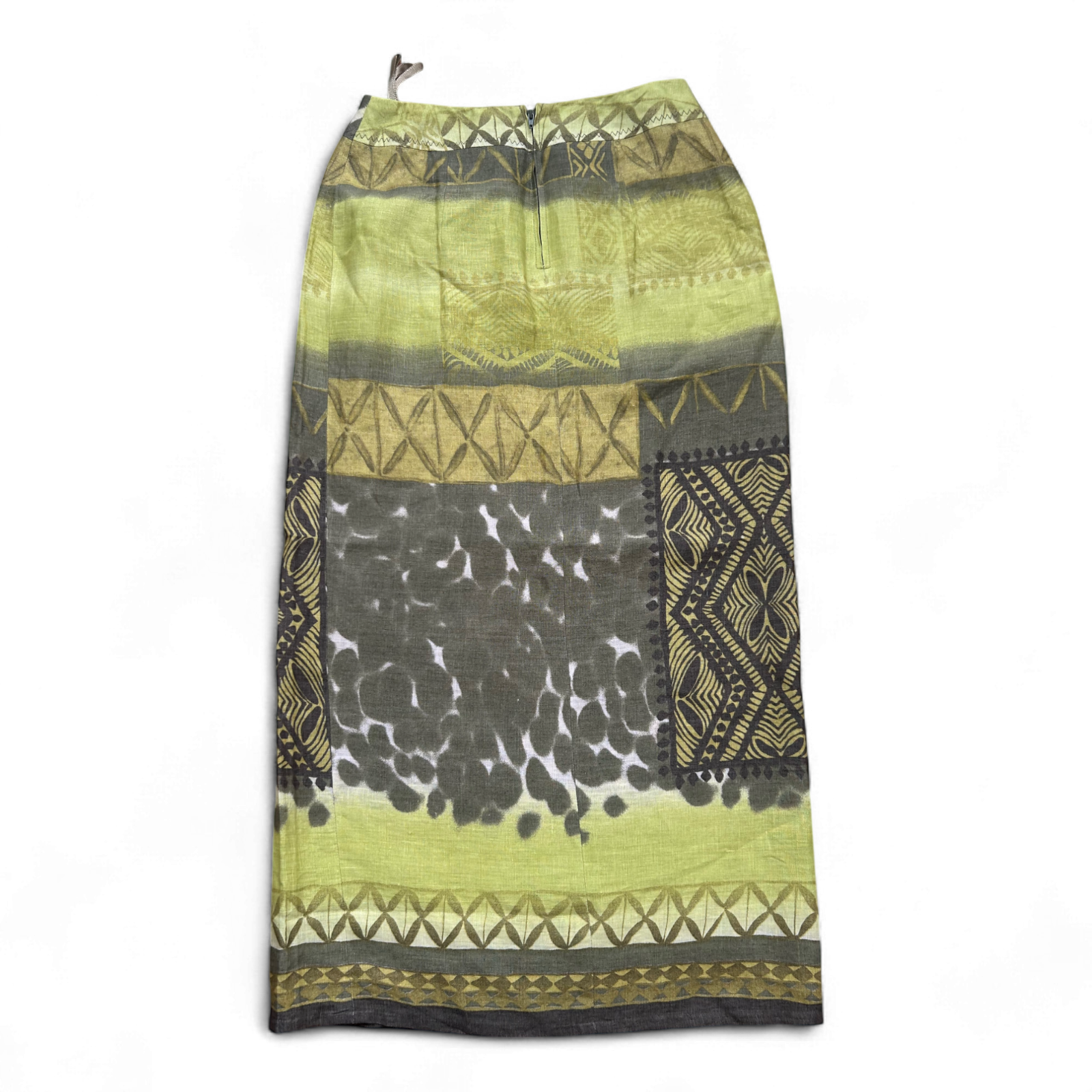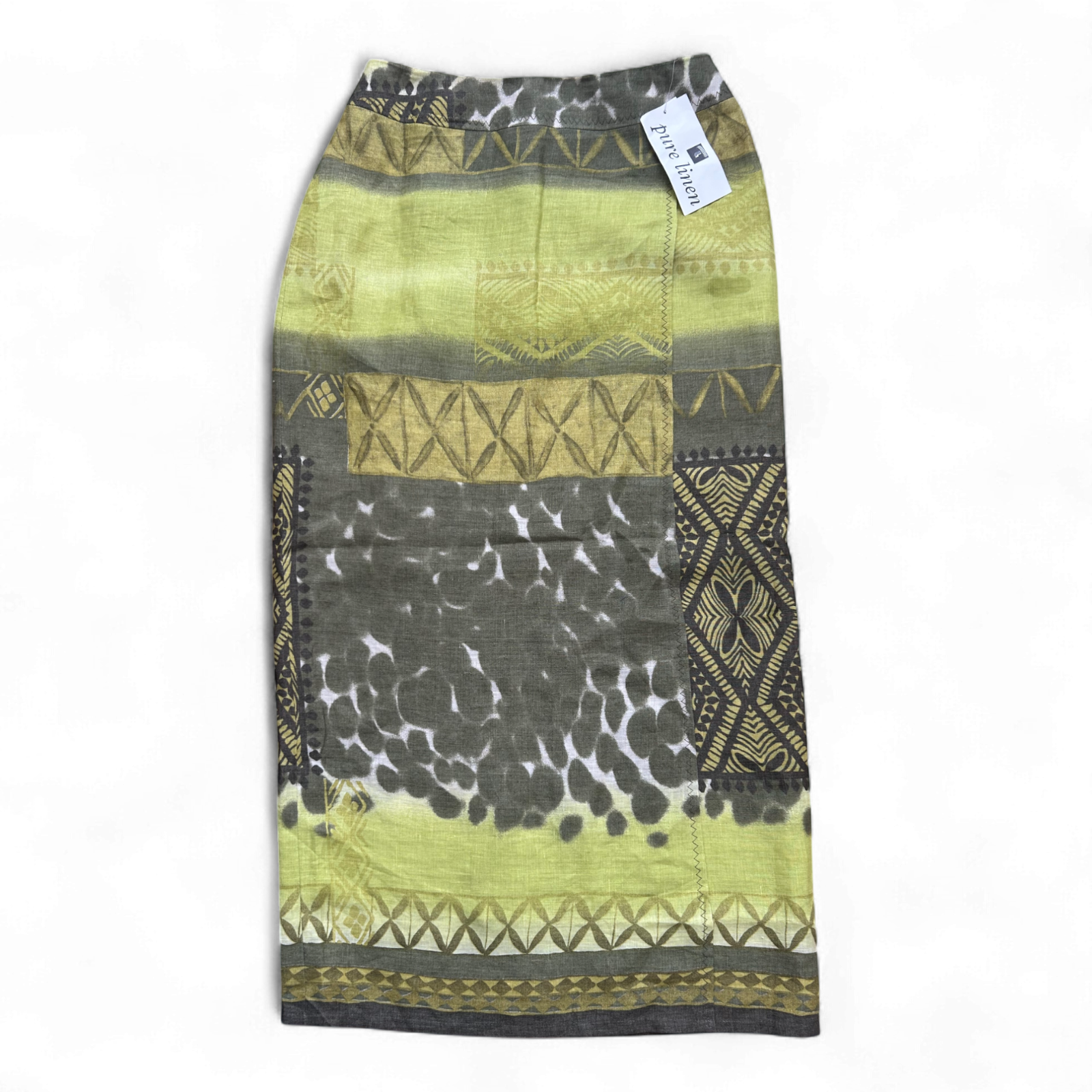 Ashley Brooke Rock Gr 36 Leinen Grün Muster Neu Mit Etikett 92 cm Lang