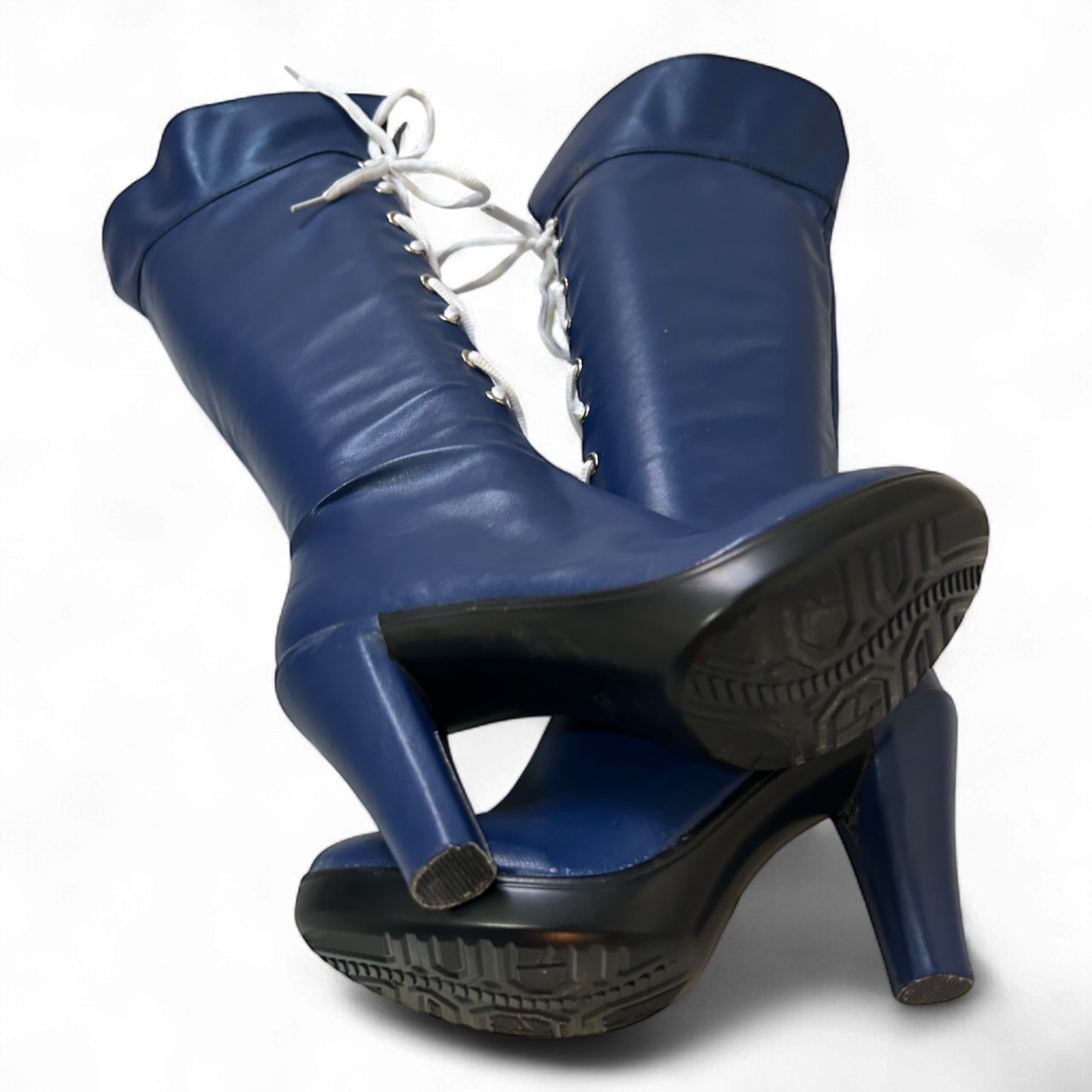 Asia Stiefel Blau Gr 35 Kunstleder Neu High Heels Reißverschluss Schnürung Cosplay