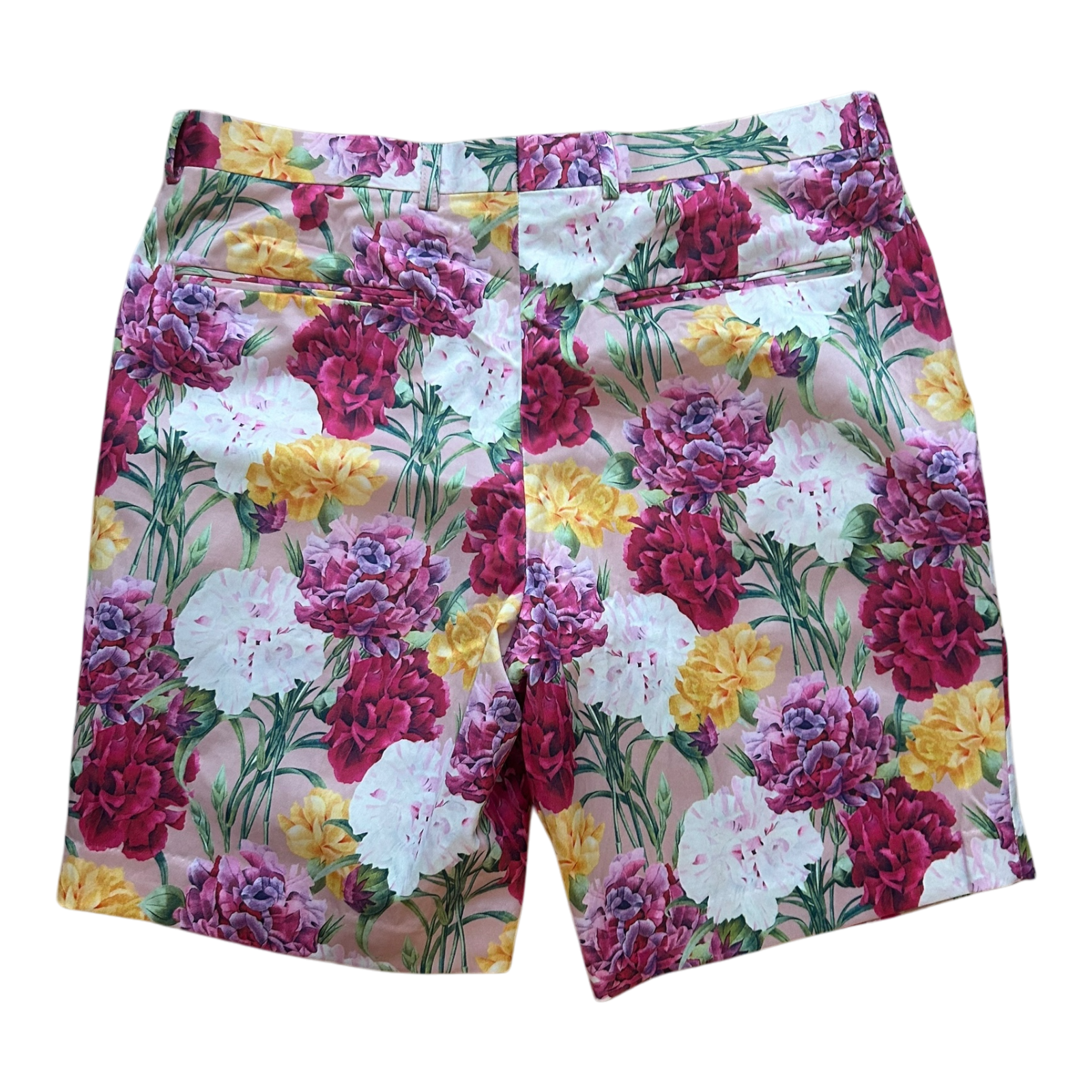 Auffällige ASOS Shorts vorderern und hinteren Hosentaschen mit schrillem Blumenmuster in Pink. Größe W32 L32, perfekt für ein Statement-Sommeroutfit. Leichtes und bequemes Material – ideal für den Strand oder Festivals!