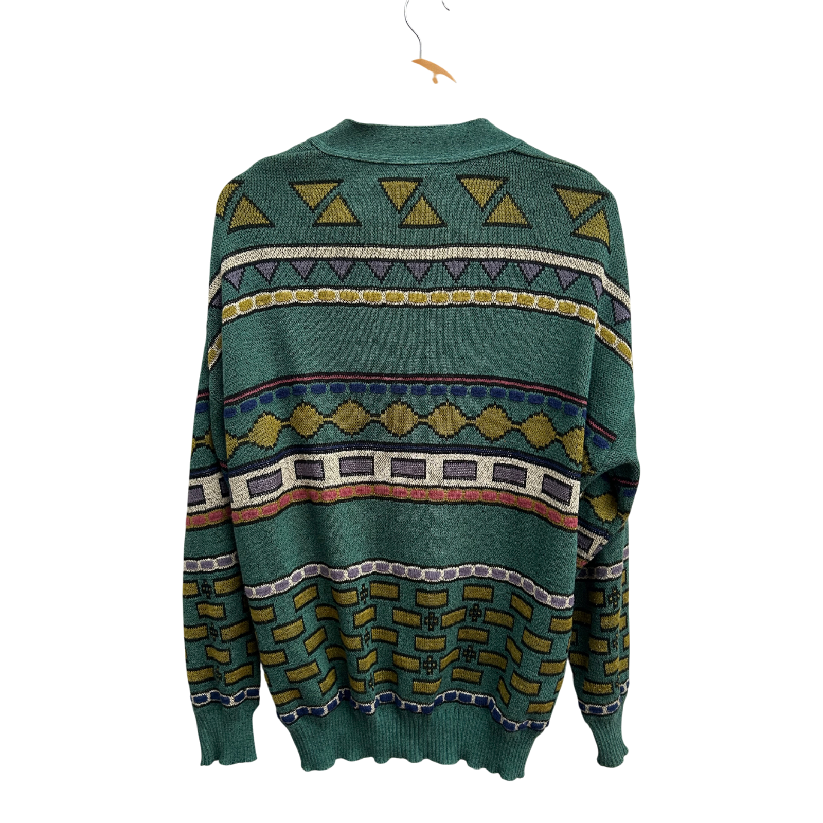 Avanti Strickjacke Herren Gr 52 L Grün Bunt Vintage 80er Retro Muster Baumwolle Mix
