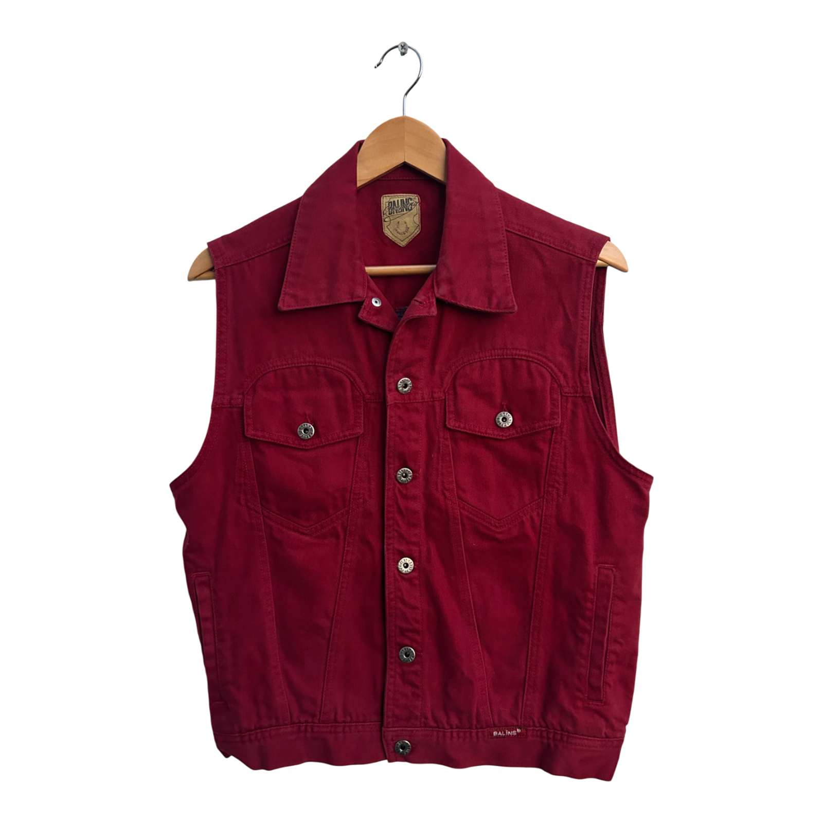 Stylische Jeansweste von Balins Jeans Company in kräftigem Rot. Sie besteht aus 100 % Baumwolle und ist mit klassischen Knöpfen im Denim-Look ausgestattet. Die Maße: Brustweite 51 cm, Länge 56 cm. Ursprünglich mit Größe 164 ausgezeichnet, passend wie Damen M (38/40) oder Herren S/M – bitte Maße beachten. Die Weste ist vielseitig kombinierbar und ein cooles Vintage-Highlight für Freizeit und Streetwear. ❤️✨