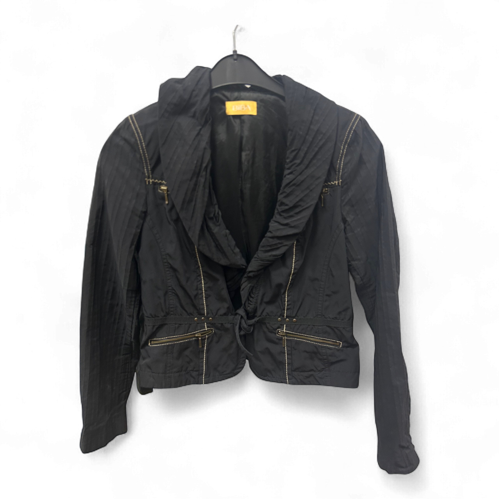Biba Jacke Schwarz Gr 38 Raffung Ziernähte Kurzjacke Elegant Trendy