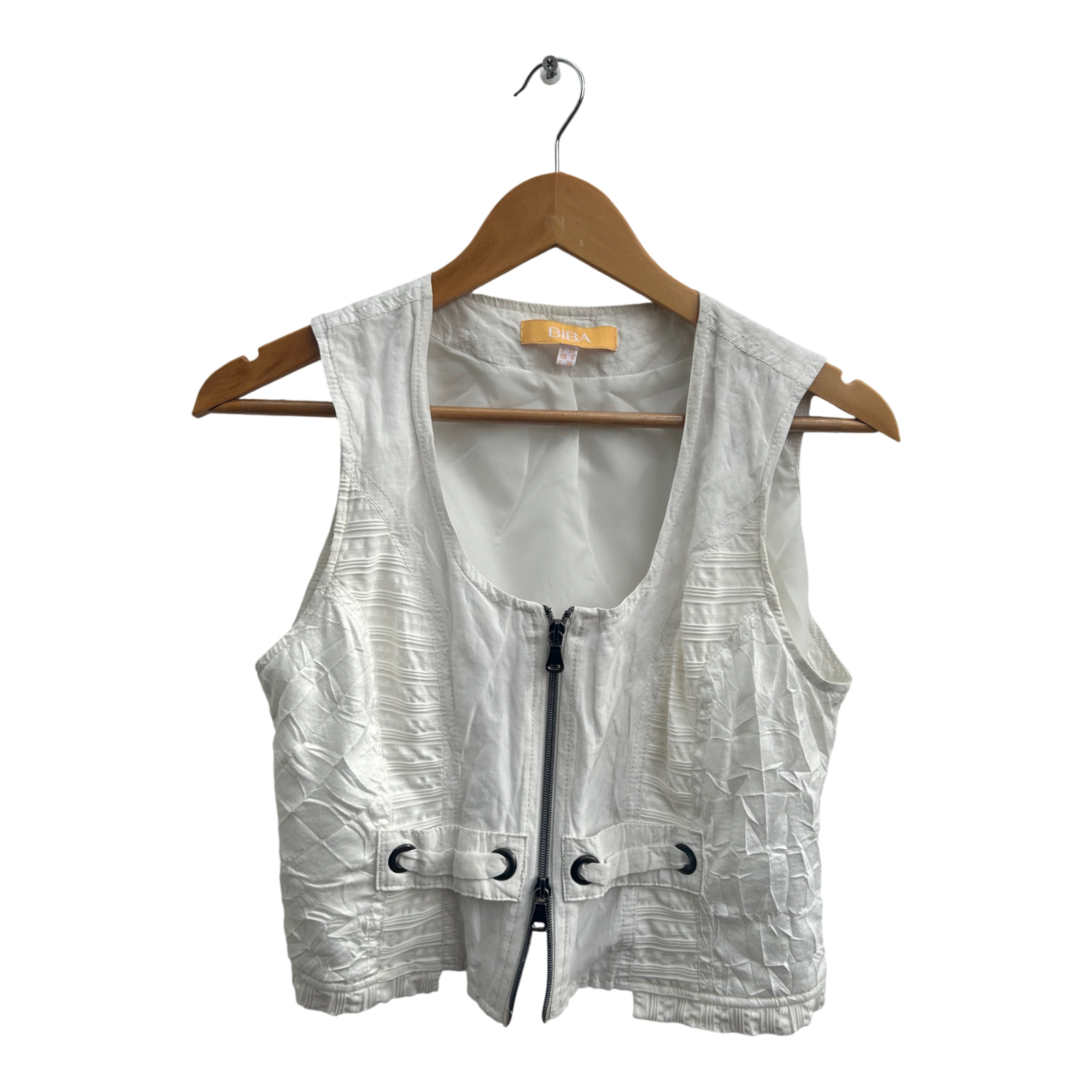 Biba Weste Damen Gr 34 Weiß Kurz Reißverschluss Elegant Sommer Stilvoll