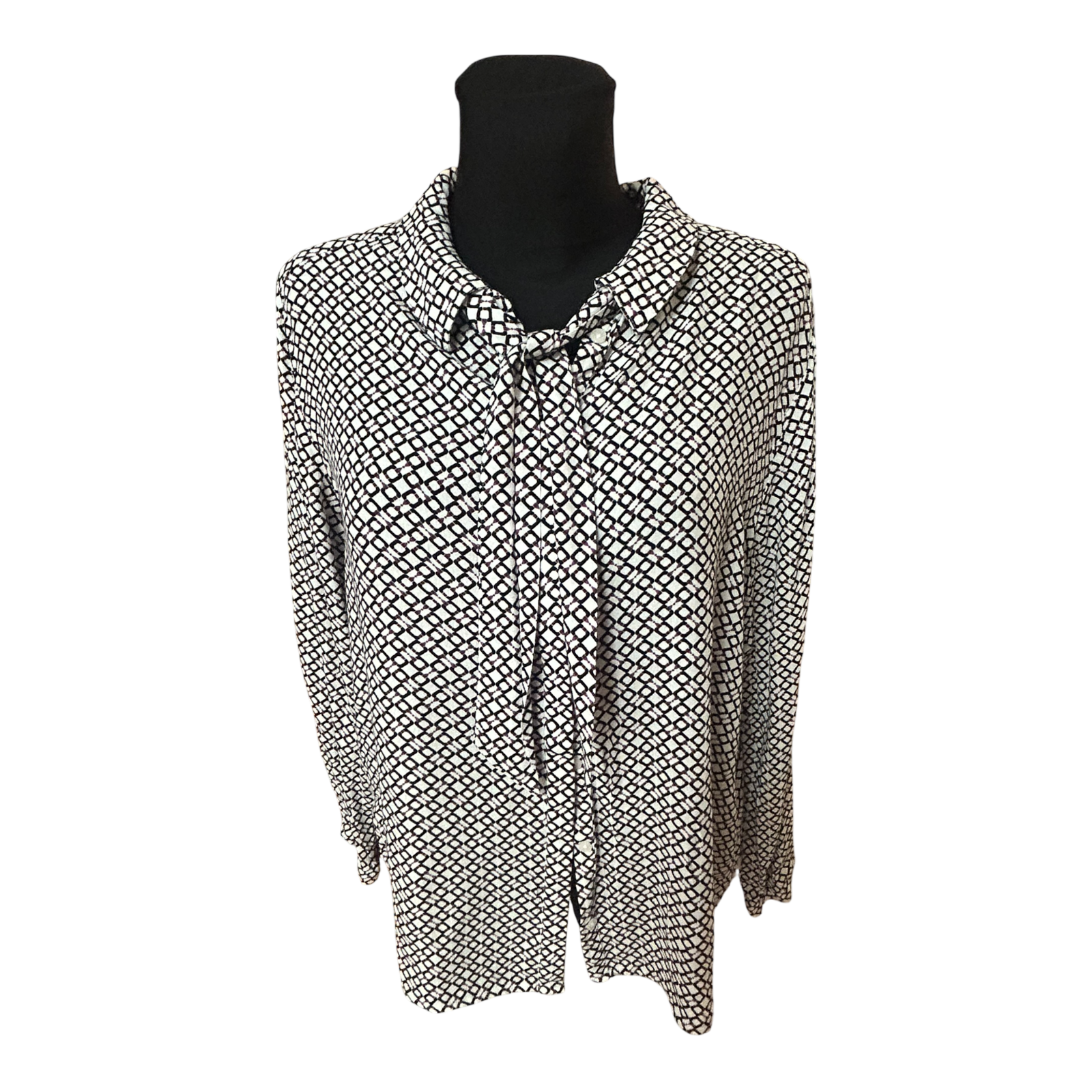 Bonita Bluse Damen Gr 42 Weiss Schwarz Muster Langarm Elegant Klassisch