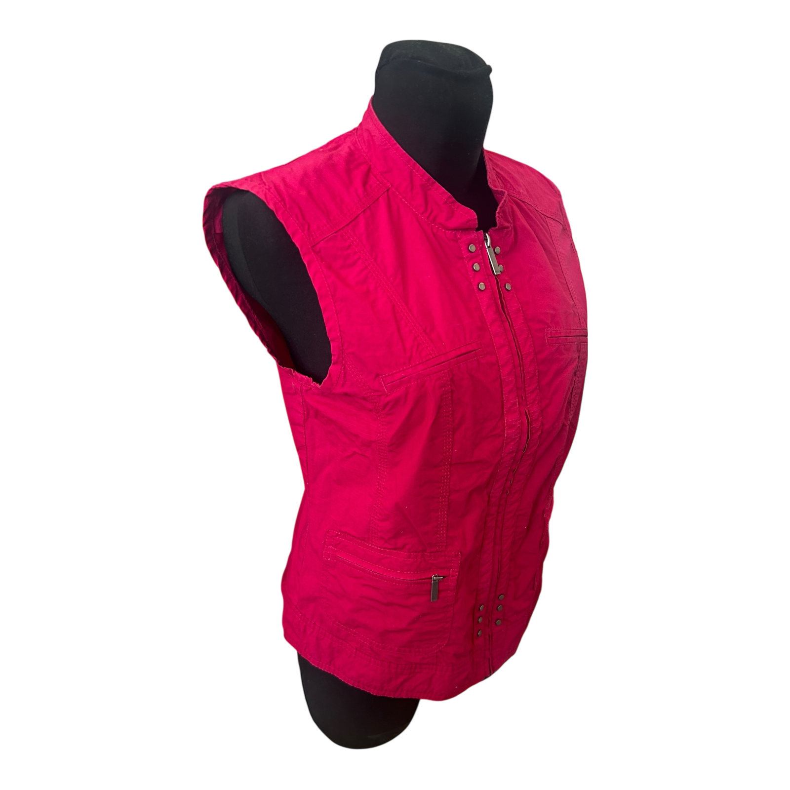 Diese sommerliche Damenweste von Bonita in Größe 40 ist ein praktischer und zugleich frischer Begleiter für Alltag und Freizeit. Das kräftige Pink setzt einen schönen Farbakzent und wirkt besonders lebendig zu hellen Oberteilen oder Kleidern. Die Weste ist ungefüttert und dadurch angenehm leicht zu tragen, ideal für Frühling und Sommer. Der Stehkragen verleiht ihr eine sportlich-moderne Note, während der Reißverschluss mit Druckknopfdetails funktional und dekorativ zugleich ist. Mehrere Taschen bieten Platz für Kleinigkeiten und unterstreichen den lässigen Stil. Die Brustweite beträgt ca. 49 cm, die Länge ca. 59 cm. Das Material besteht aus 100 % Baumwolle und fühlt sich angenehm natürlich an 🌸☀️