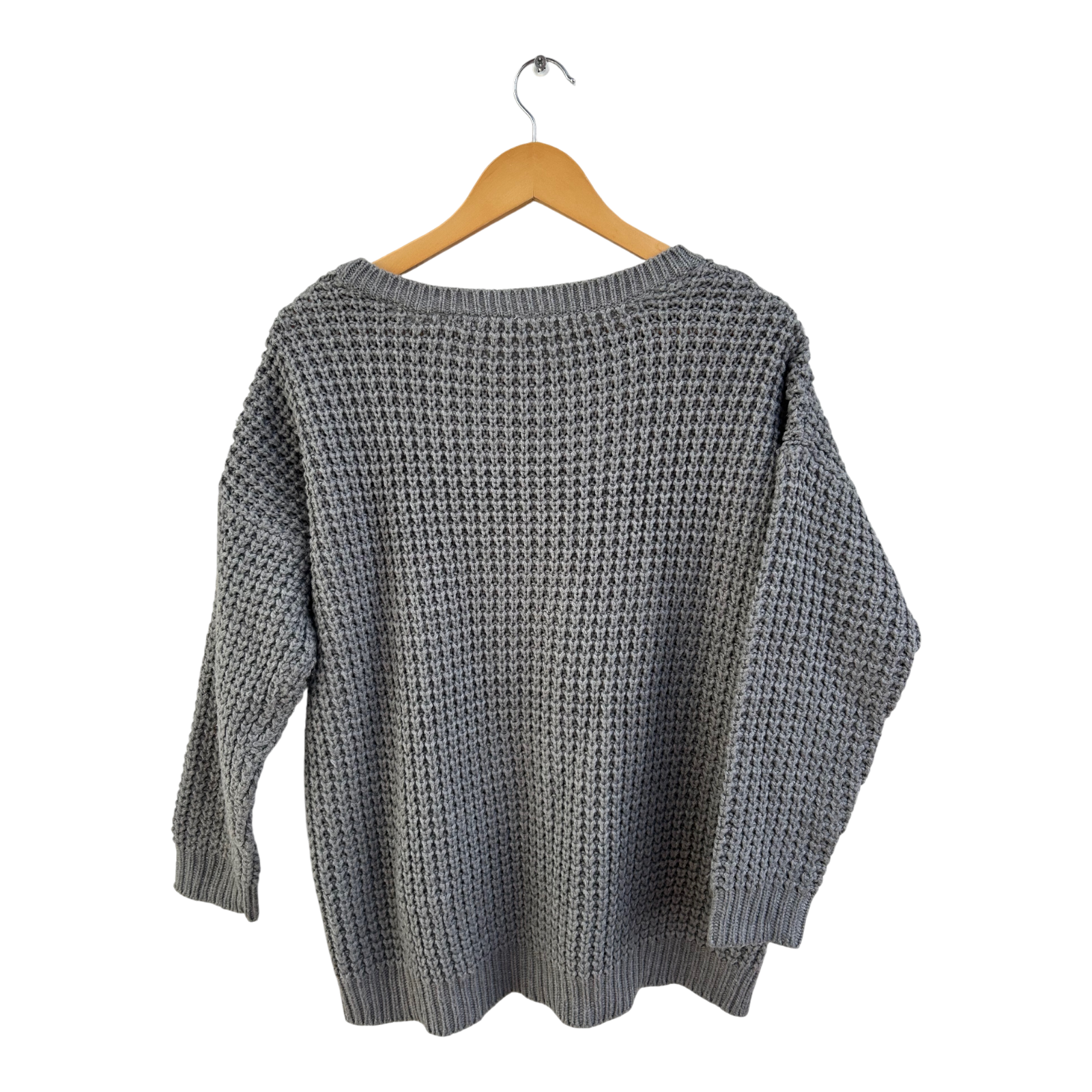 Bonprix Pullover Damen Gr M Grau Wollmix Struktur Feinstrick 3/4 Arm Elegant