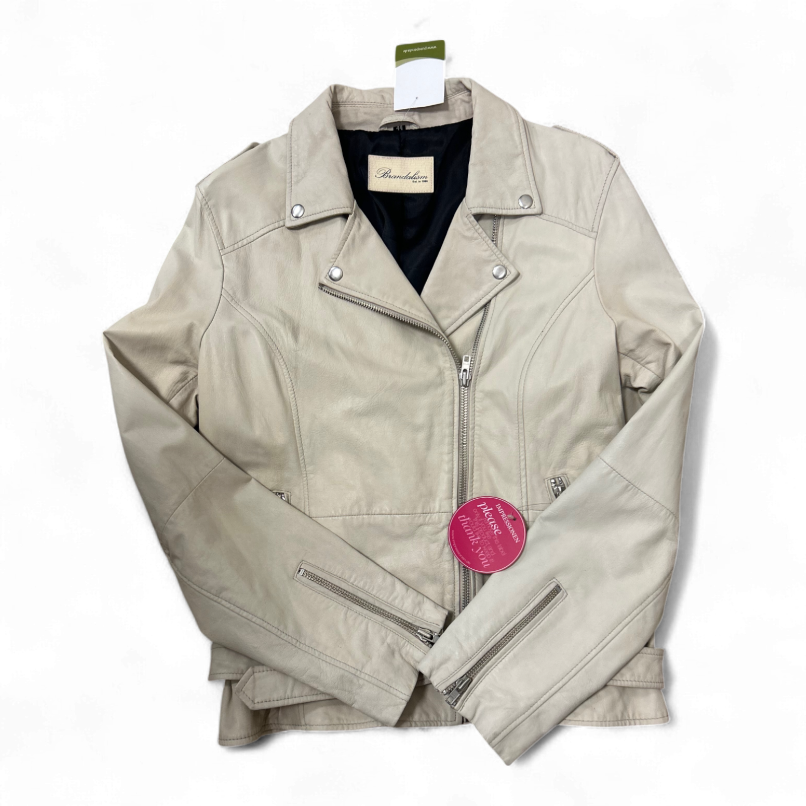 Brandalism Lederjacke Creme Gr 44 Ziegennappa Neu Gürtel Schulterriegel Bikerjacke