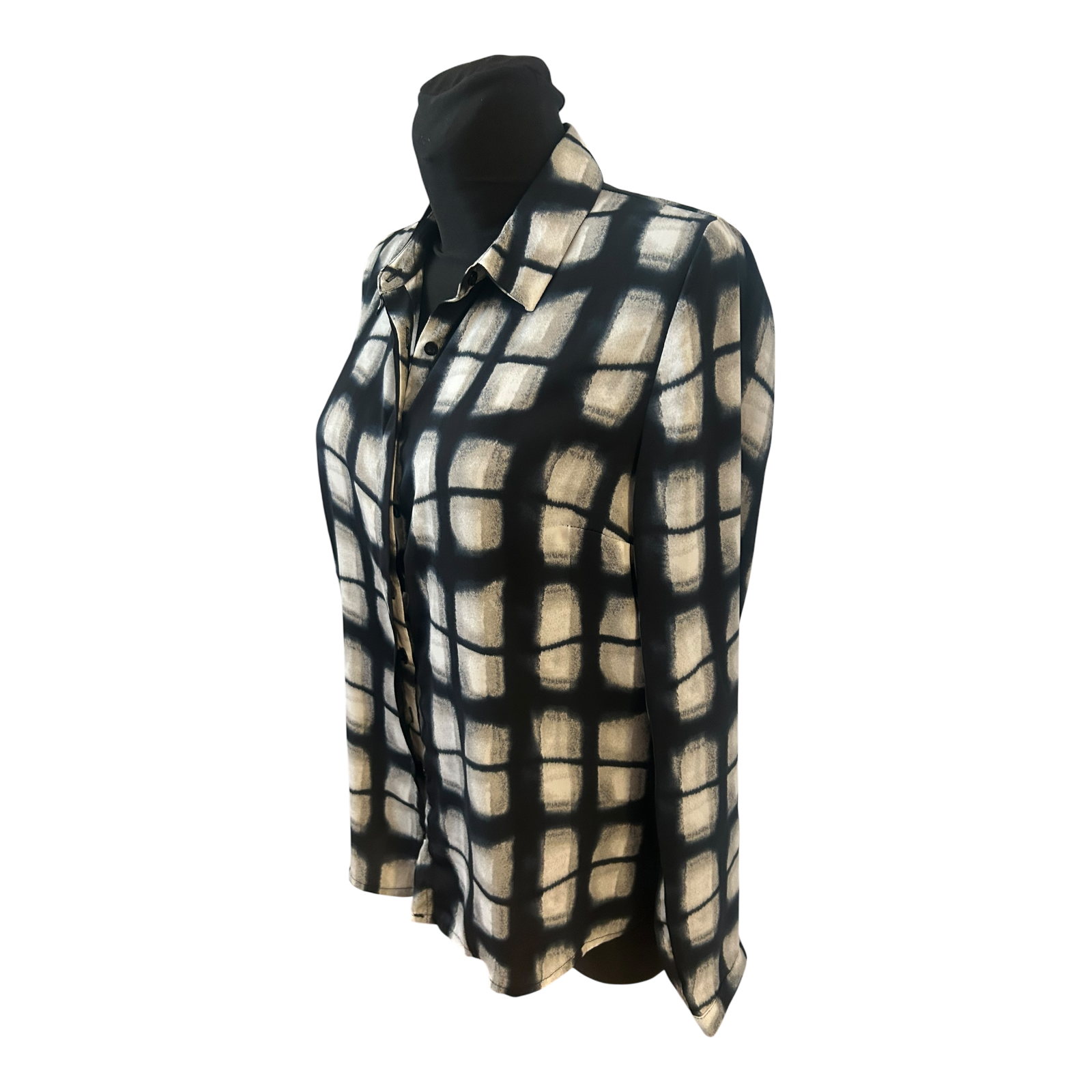 Allover-Muster und wirkt durch das weiche, fließende Material besonders angenehm zu tragen ✨ Sie hat eine verdeckte Knopfleiste, einen klassischen Kragen und lange Ärmel mit einer Ärmellänge von ca. 64 cm.