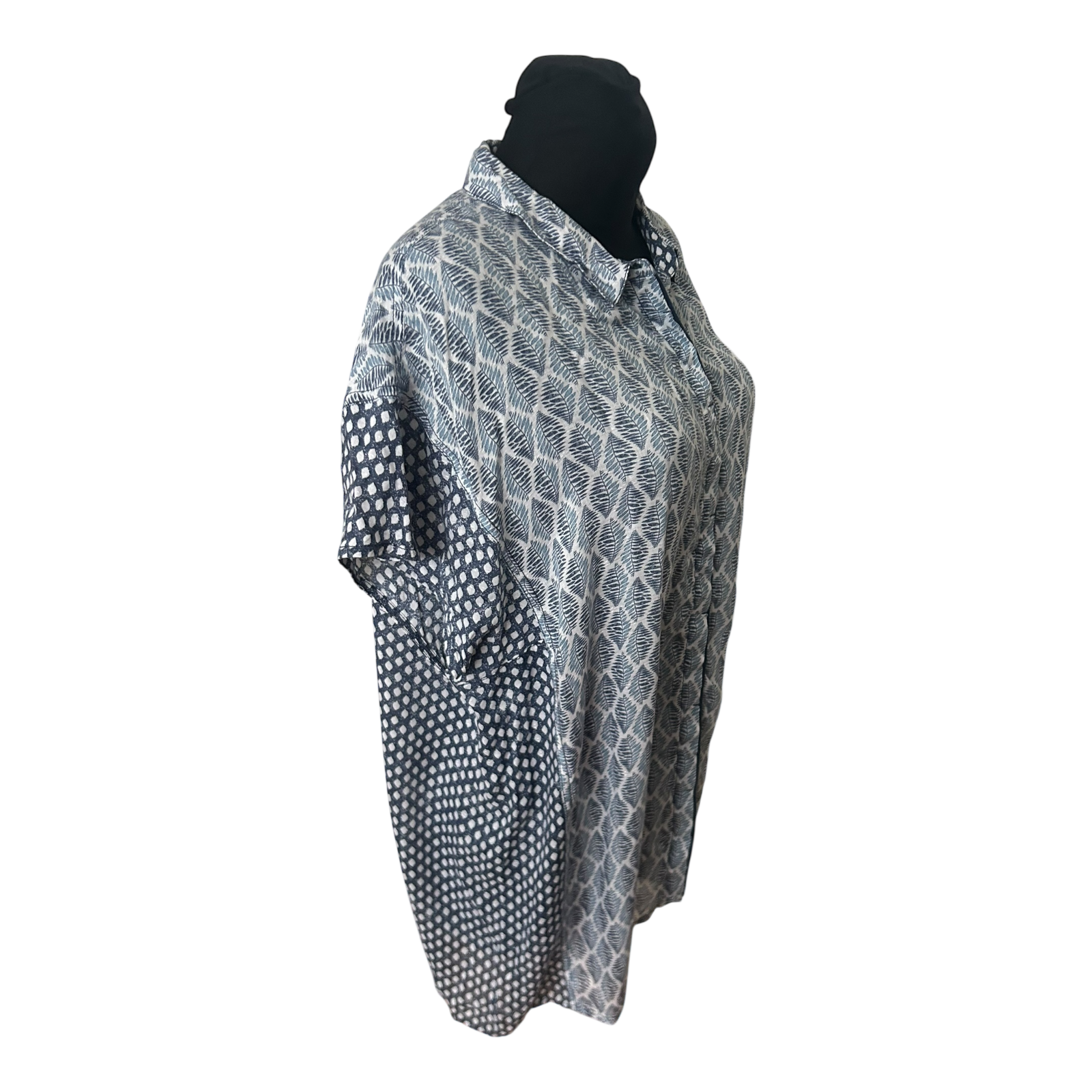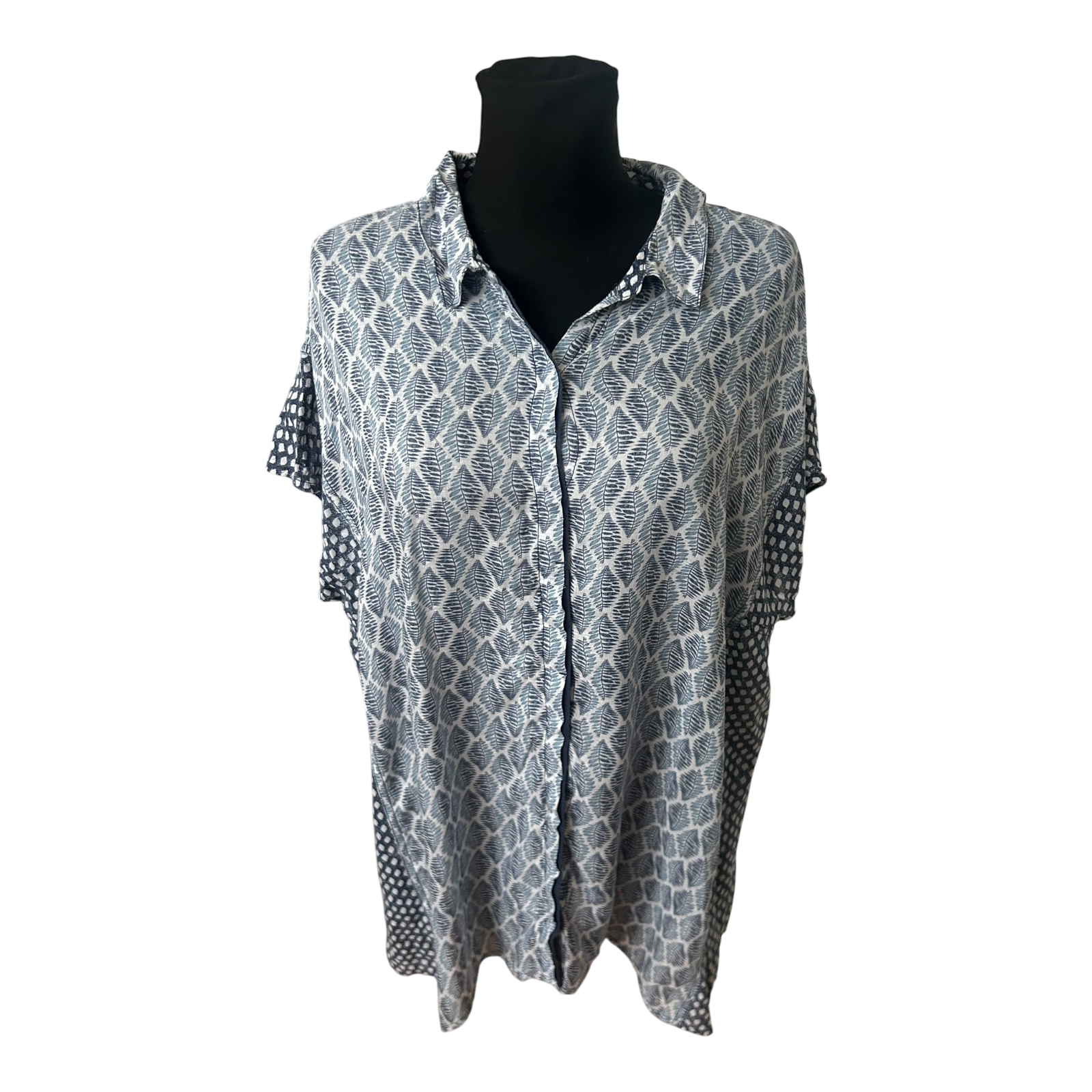 Cecil Damen Tunika Bluse XXL Blau Weiß Muster Kurzarm Sommer Lässig