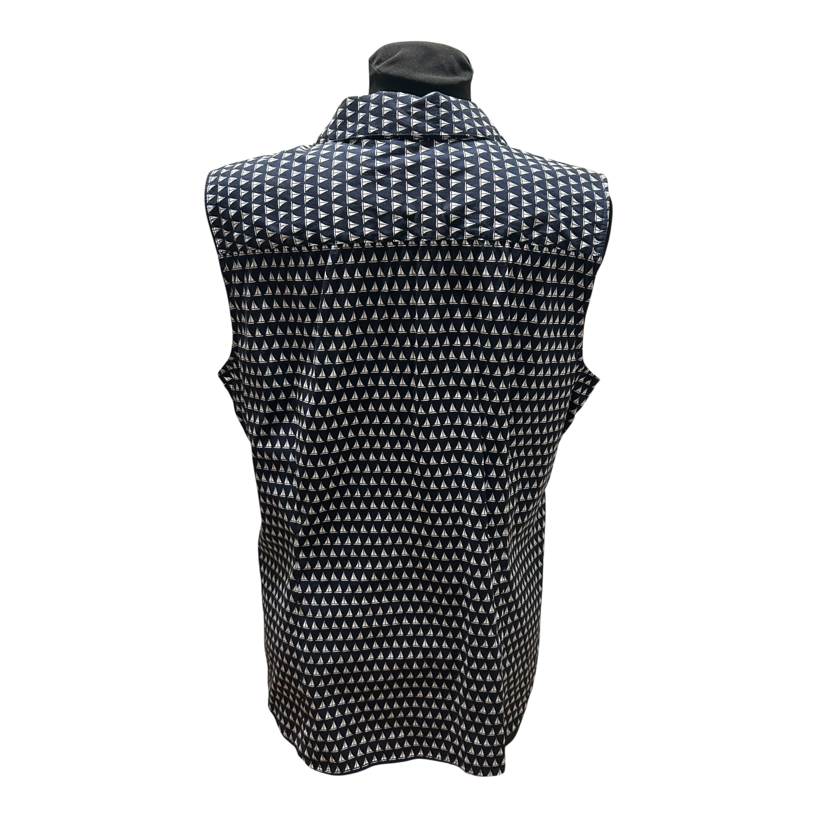 Diese maritime Damenbluse von Charter Club in US-Größe 16, entsprechend etwa einer deutschen Größe 46, überzeugt durch ihr klassisches Design in Dunkelblau mit weißem Segelbootmuster ⚓ Der Look ist zeitlos, frisch und vielseitig kombinierbar.