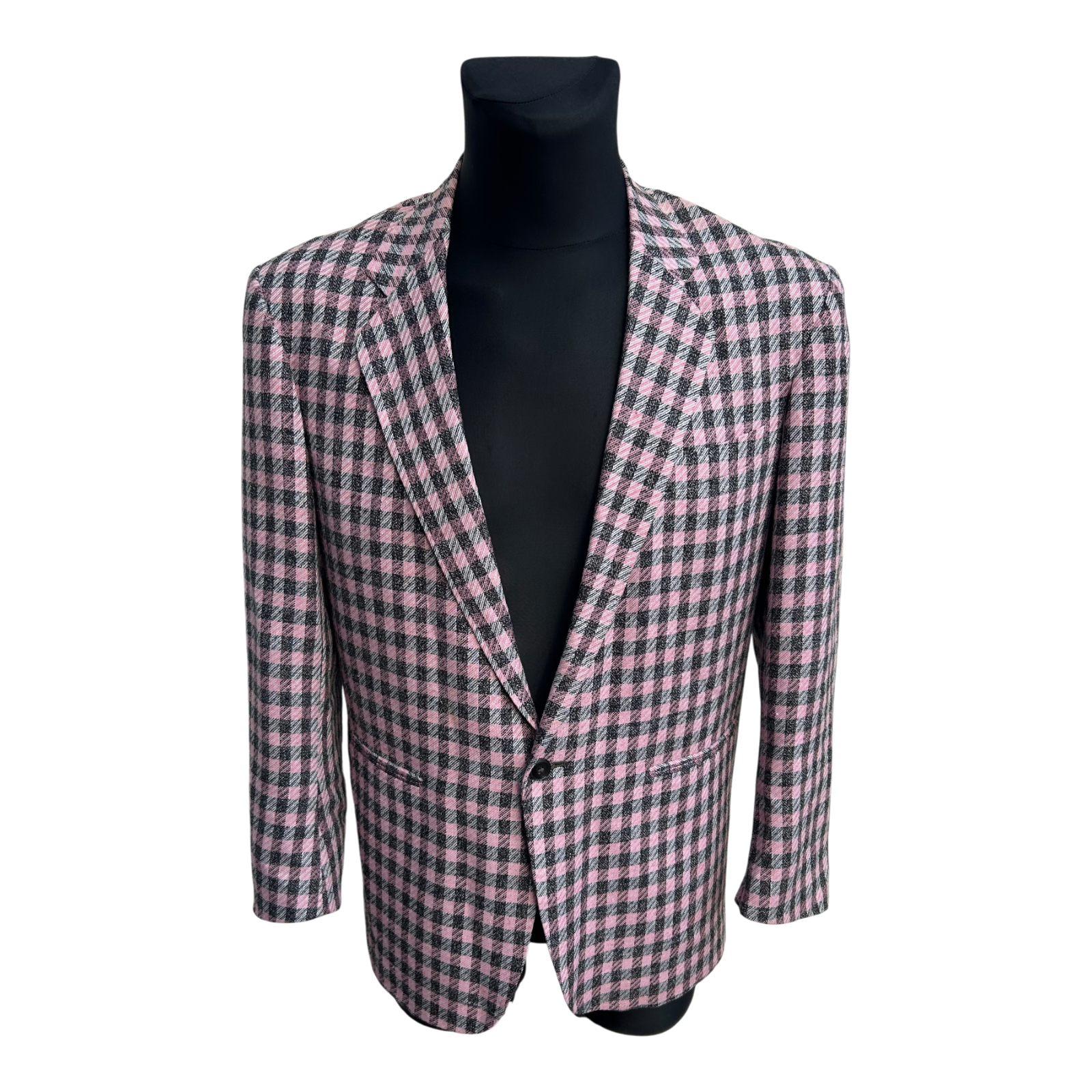Chil Out by Four Forty Sakko Herren Gr 52 Rosa Grau Karo Wollmischung Vintage Elegant
