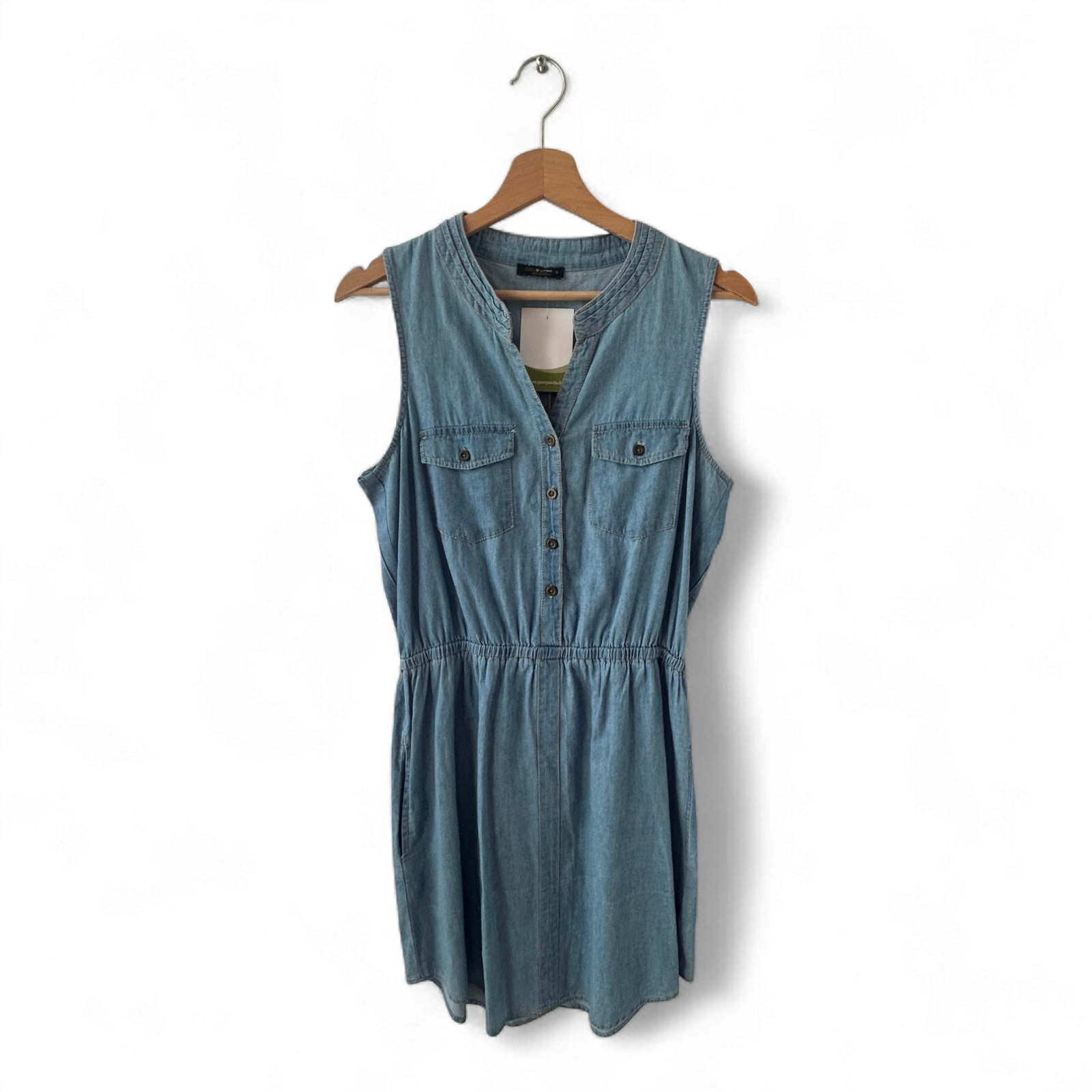 Lässiges Jeanskleid von Colloseum in klassischem Hellblau aus reiner Baumwolle 👖. Locker fallend mit elastischer Taille, Brusttaschen, Knopfleiste vorn und seitlichen Eingrifftaschen. Perfekt für warme Sommertage, Urlaub oder Freizeit. Brustweite ca. 46 cm, entspricht Größe S. Gebraucht, aber in gutem Zustand.