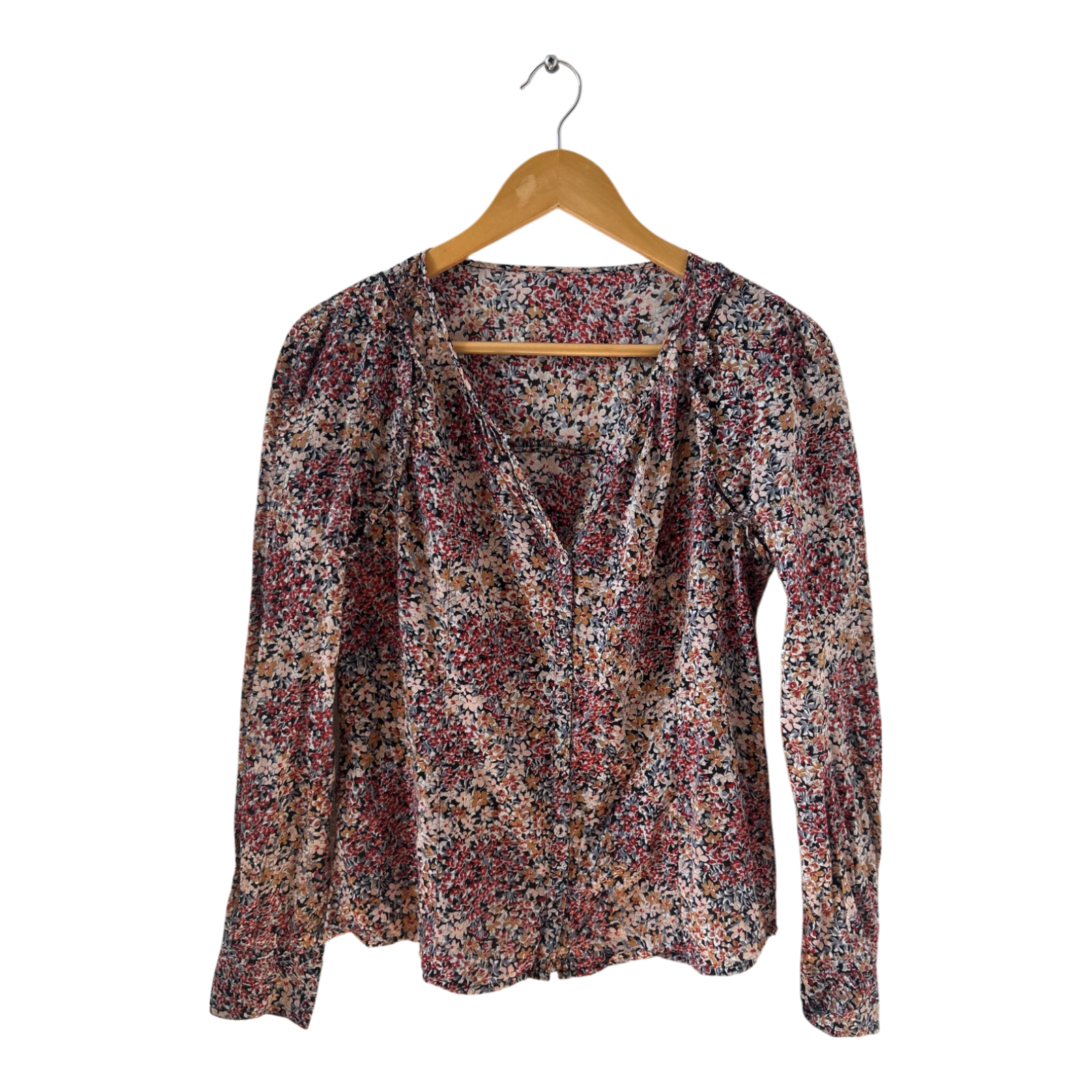 Comptoir des Cotonniers Bluse 38 Blumen Viskoseoptik Langarm Boho Look Top elegant