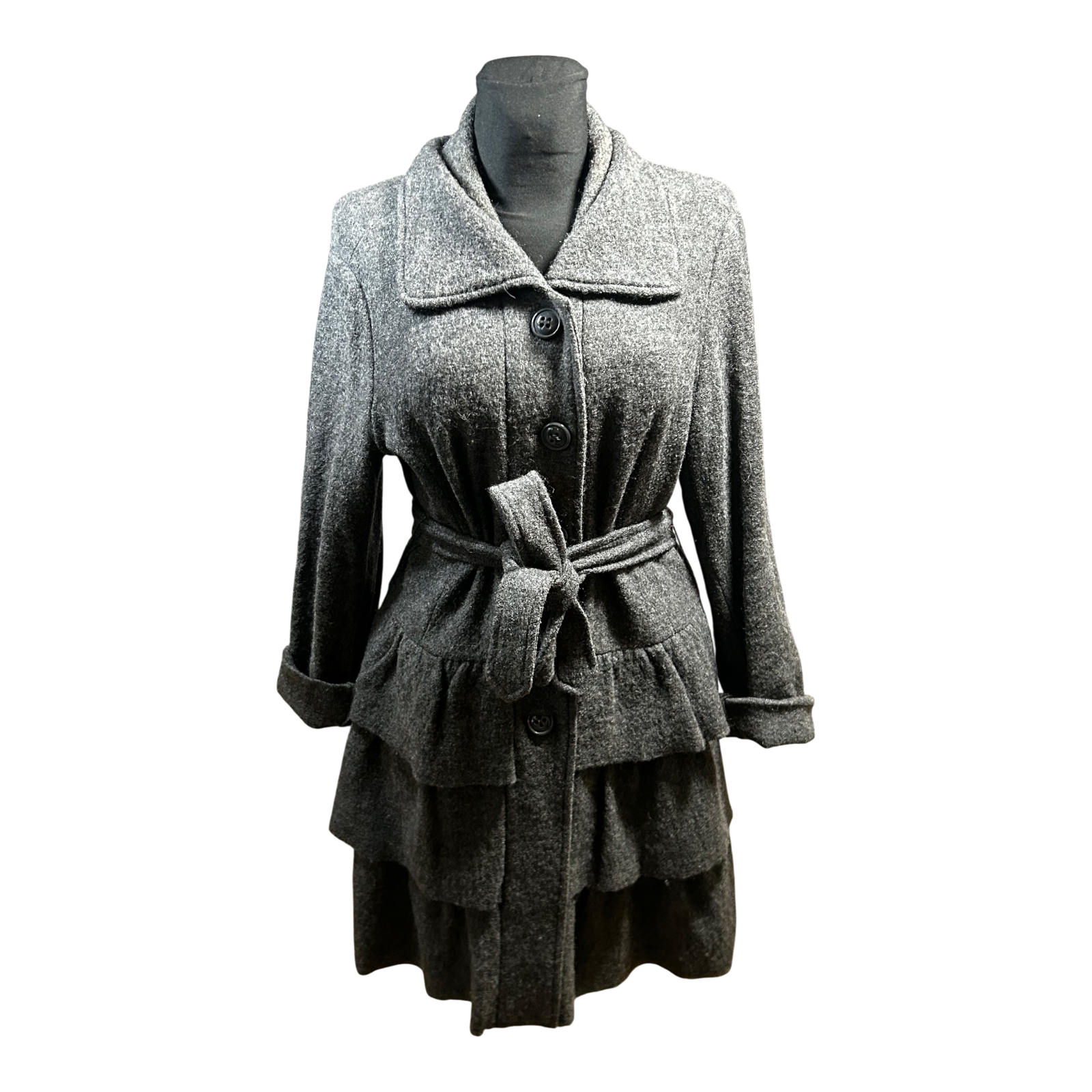 Cynthia Rowley Damen Mantel Wolle Grau Gr L Elegant Klassisch Winter