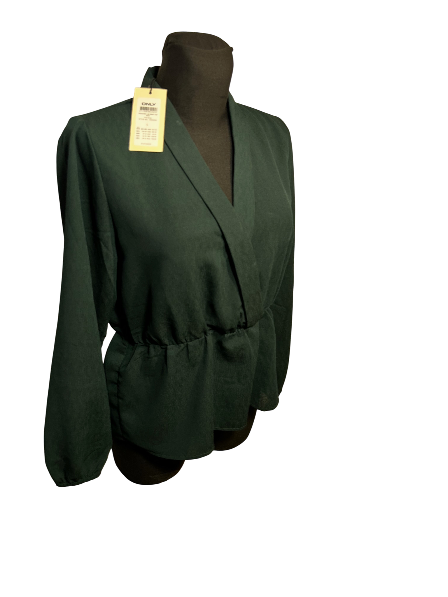 Pigalle Damen Bluse Wickeloptik Gr L Dunkelgrün Elegant Langarm Modern Neu