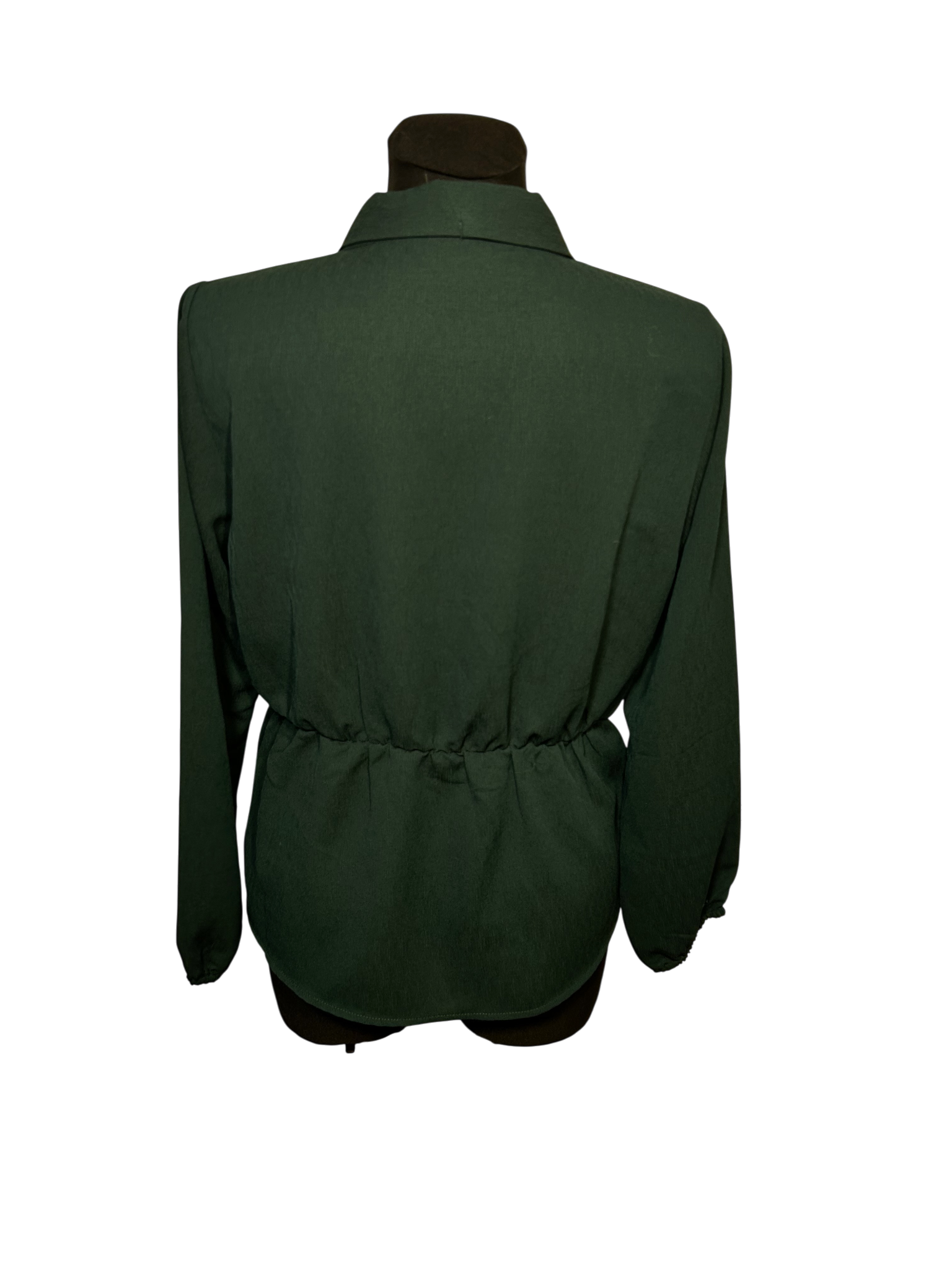 Diese elegante Damenbluse in Größe L präsentiert sich in einem tiefen Dunkelgrün und wirkt durch die leicht strukturierte Oberfläche sowie die feminine Wickeloptik besonders edel ✨ Der Taillenbereich ist sanft gerafft, wodurch die Bluse eine schöne, fließende Silhouette erhält. Die langen Ärmel mit dezentem Abschluss und der weich fallende V-Ausschnitt unterstreichen den modernen, femininen Stil.