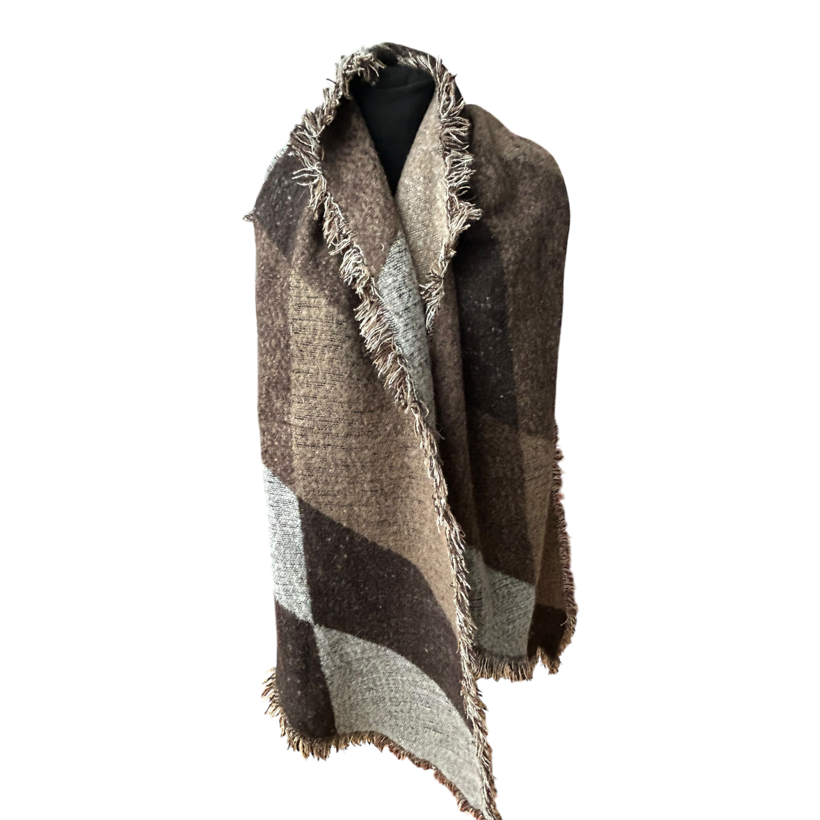 Damen großer Schal braun asymmetrisch sehr groß weich mit Fransen Herbst Winter