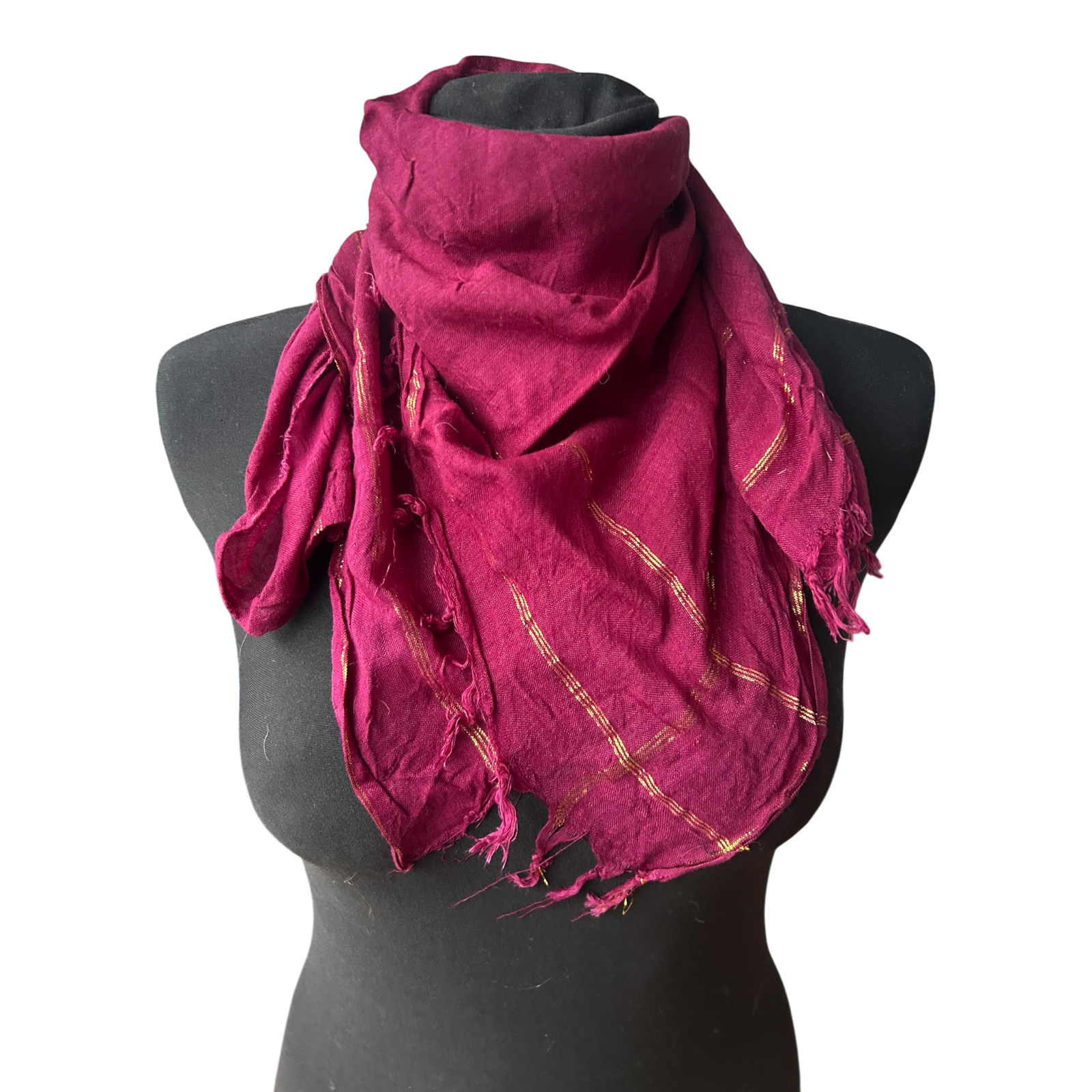 Dieses bordeauxfarbene Halstuch zeigt sich in einem ruhigen, eleganten Design mit feinen eingewebten Goldfäden, die dem Tuch eine dezente, edle Ausstrahlung verleihen ✨