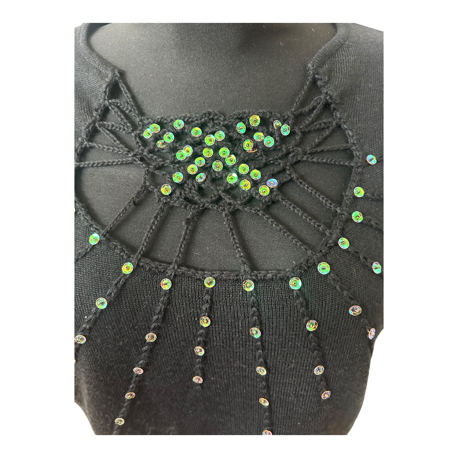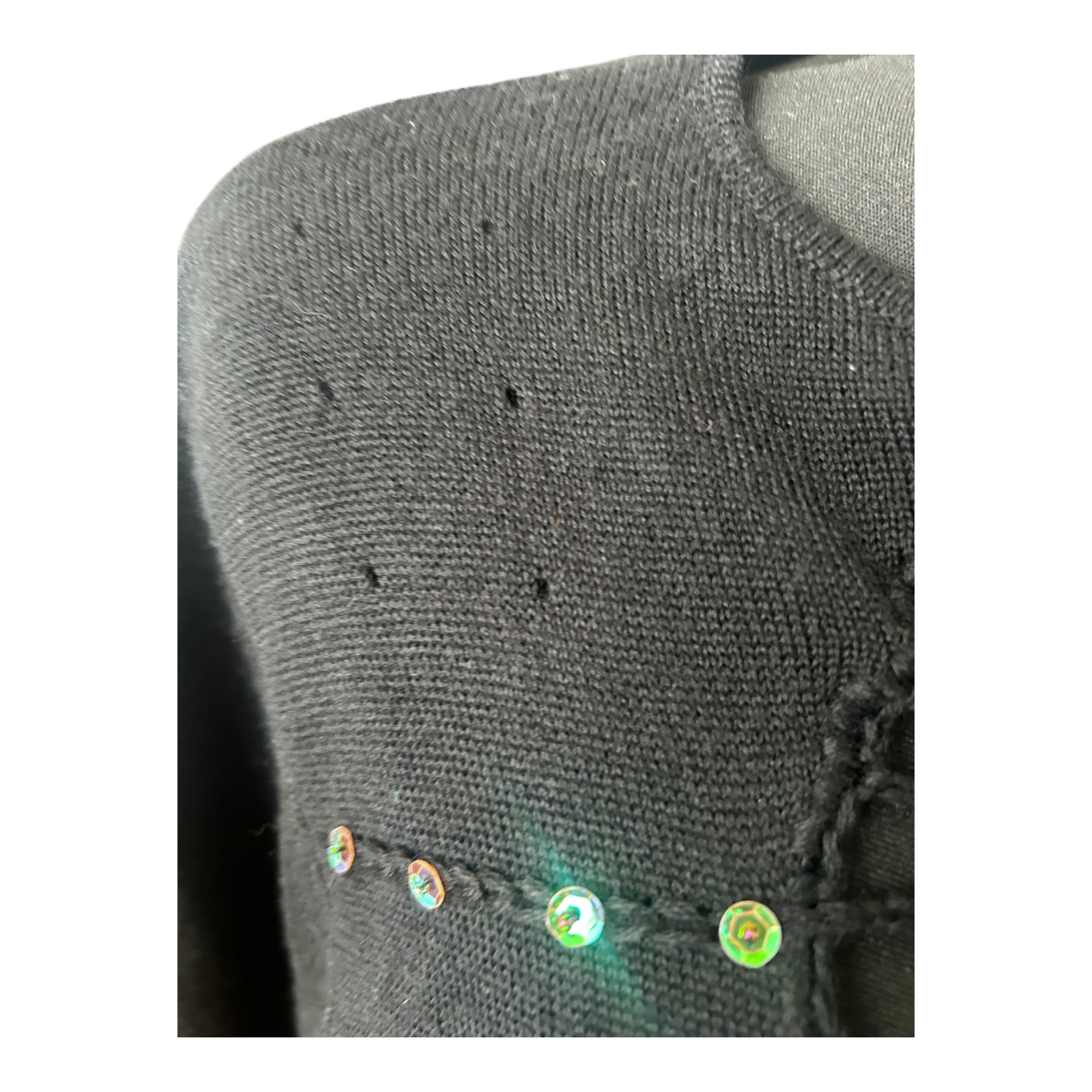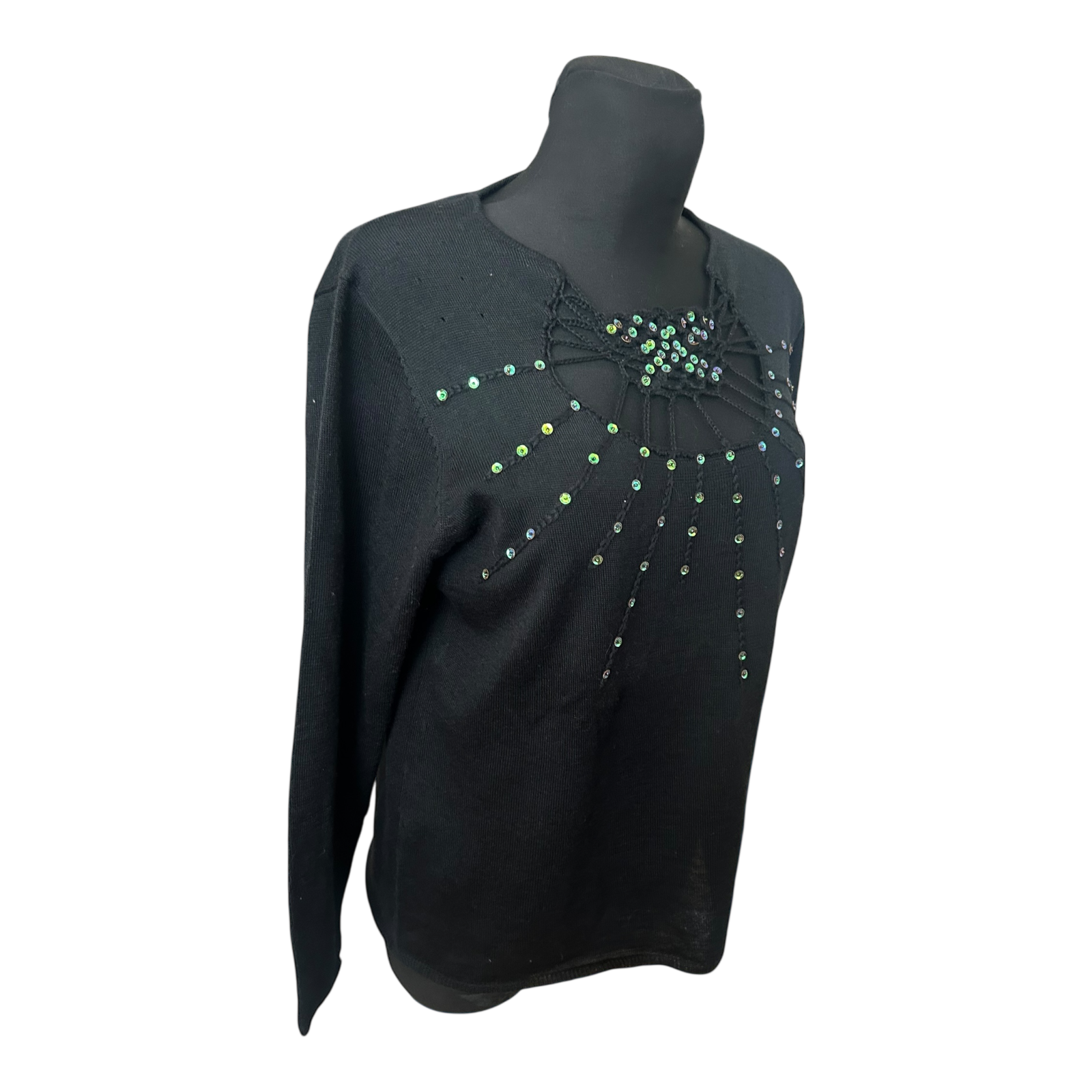 Damen Pullover Schwarz Gr 44 Langarm Strass Elegant Feinstrick Klassisch