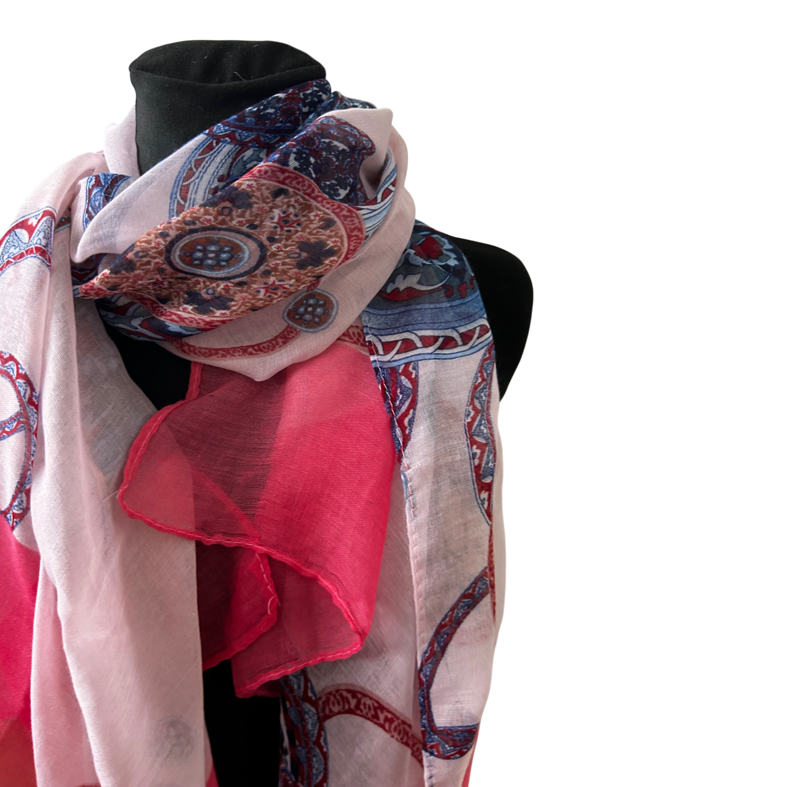 Damen Schal Muster Pink Rosa Blau Ornamente Elegant Gross Sommer Leicht Chic
