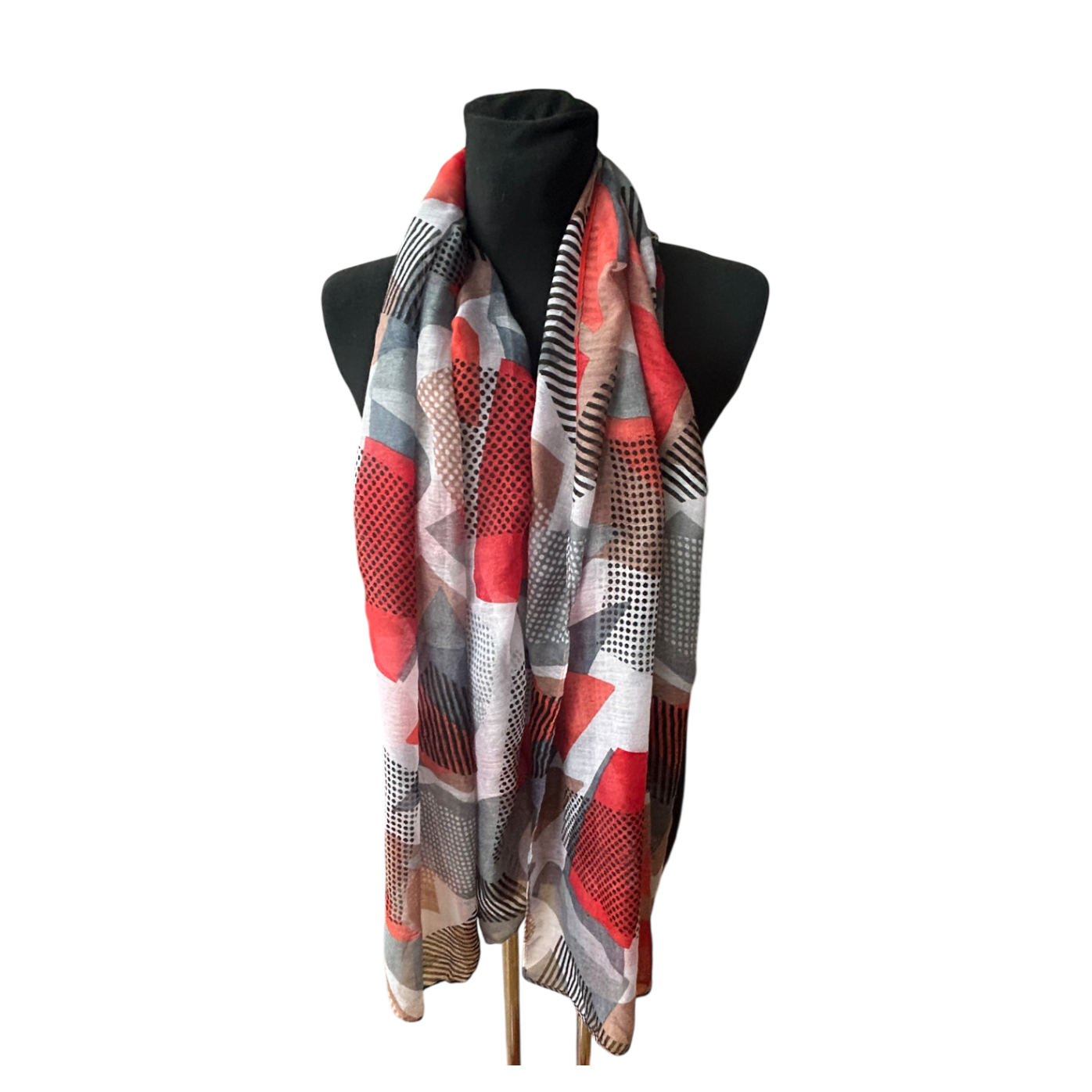 Damen Schal Tuch Viskose Geometrisch Rot Grau Schwarz 180x70