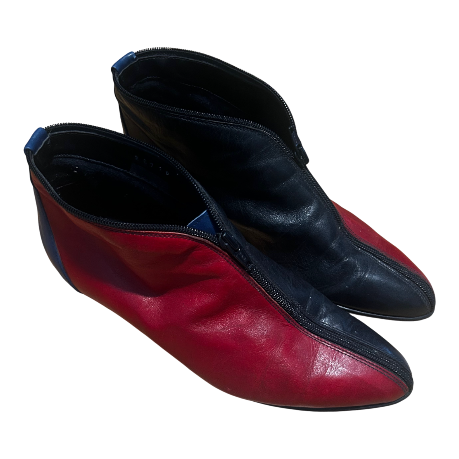 Damen Stiefeletten Schuhe Gr 39 Echtleder Schwarz Rot Blau Reißverschluss Italy