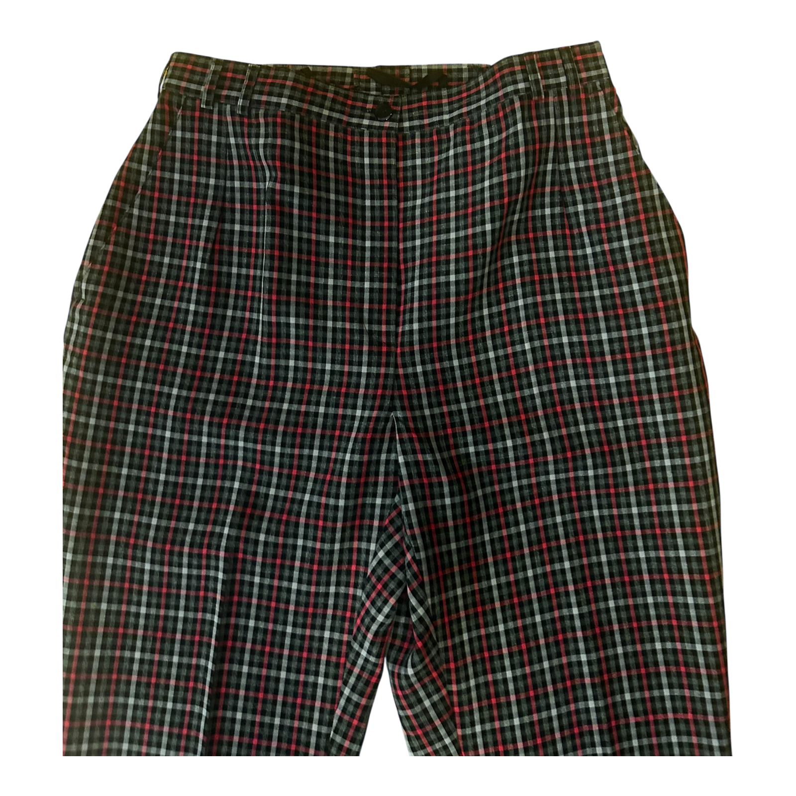 Damen Stoffhose Vintage Kariert Grau Rosa Schwarz High Waist Gr 42 Elegant