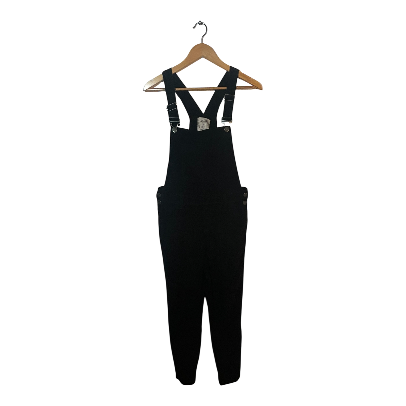 Denim Co Damen Latzhose Gr 40 Schwarz Feincord Elasthan Verstellbare Träger