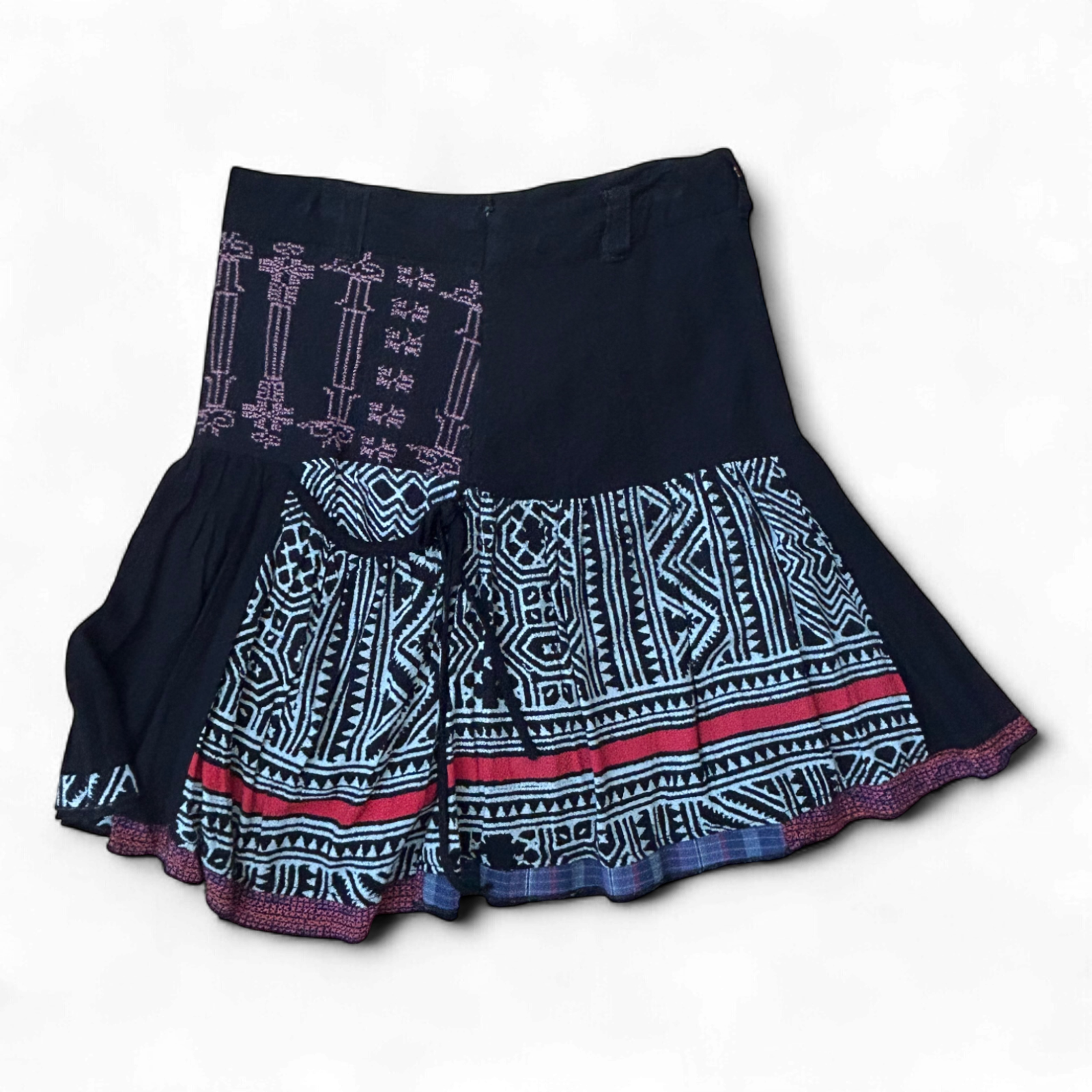 Desigual Rock Gr. 36 Boho Mustermix Stickerei gefüttert Y2K schwarz bunt