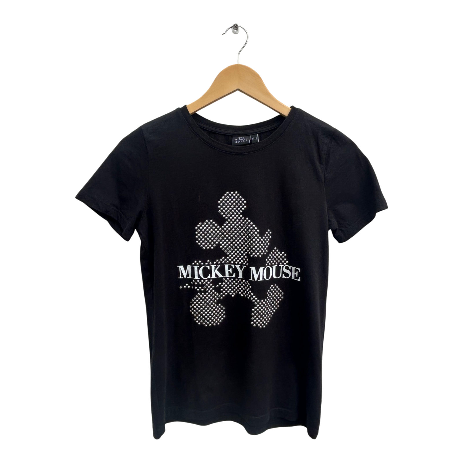 Disney Mickey Mouse Shirt Damen Gr S Schwarz Baumwolle Nieten Print Kurzarm