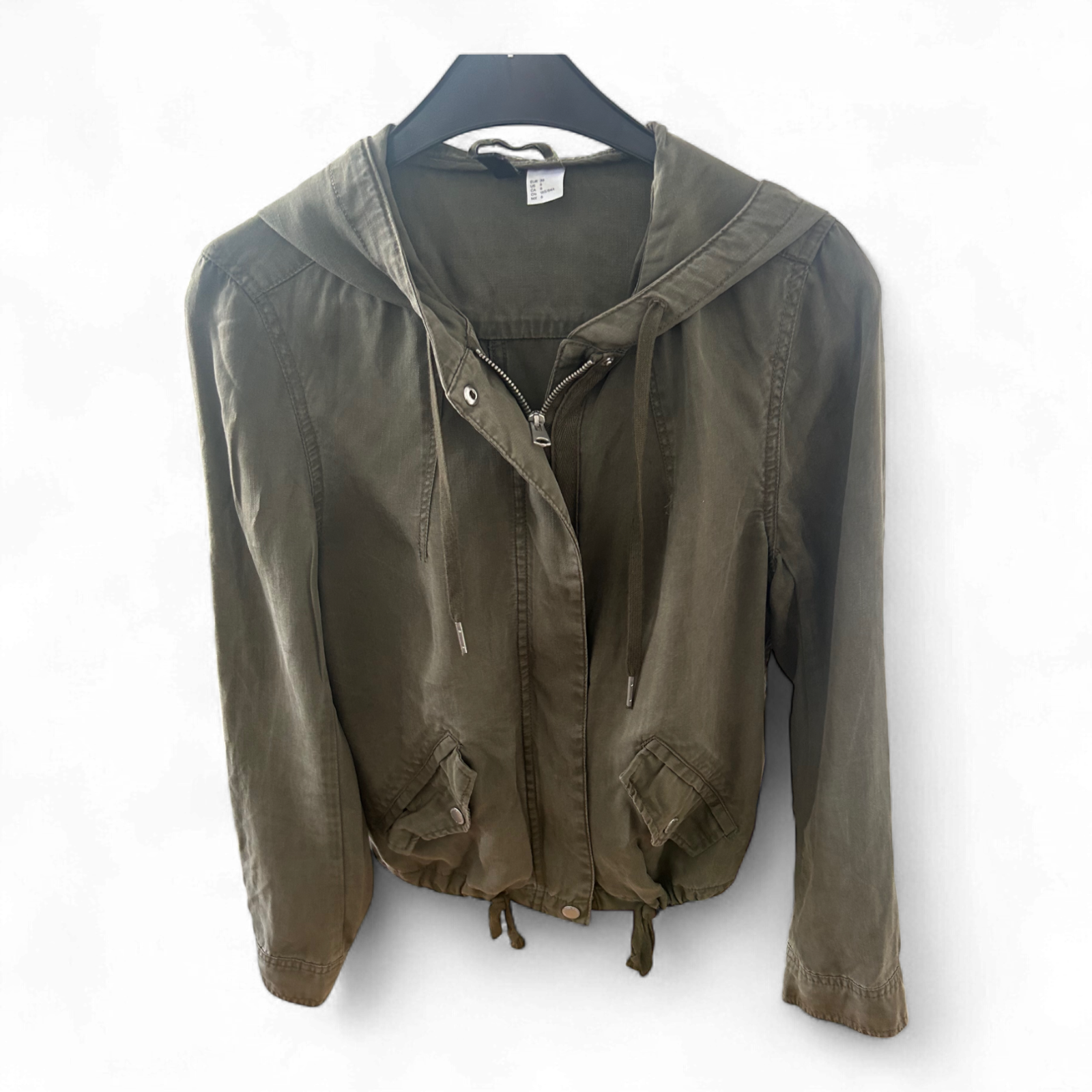 Lässig, leicht, vielseitig 💚 – diese khakifarbene Jacke von Divided ist der perfekte Begleiter für den Alltag! Der Blouson-Stil mit Tunnelzugsaum, Kapuze und Zipper verleiht der Jacke einen sportlich-urbanen Touch. Aus 100 % Lyocell gefertigt, fällt der Stoff weich und angenehm 🍃. Die Größe 36 entspricht einem eher lockeren Sitz – ideal für Frühling oder Sommer. Zustand: hervorragend – mit leichtem Used-Look für mehr Charakter!