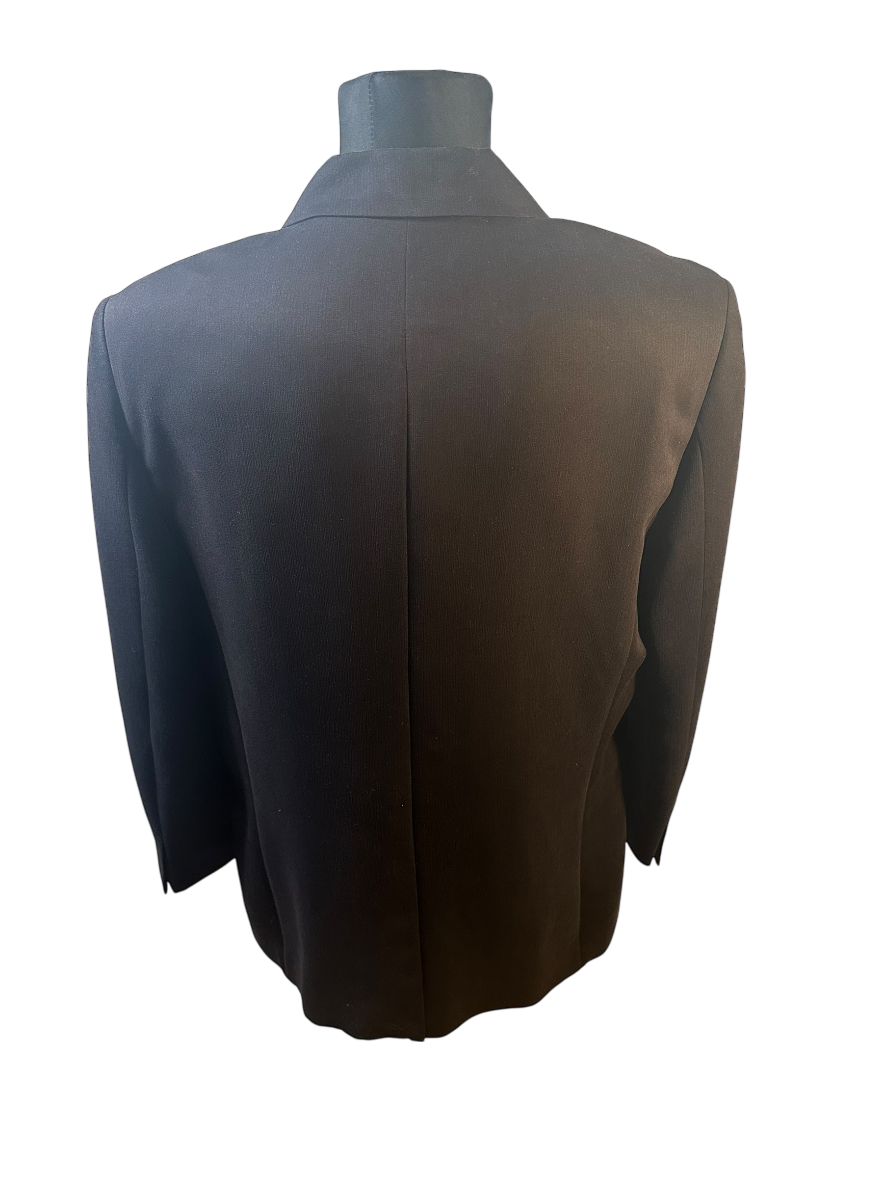 Modernes schwarzes Sakko von Downstairs in Größe 50. Angenehmer Viskose-Polyester-Mix mit glattem Acetatfutter. Zeitloser Schnitt, gepflegter Zustand – ideal für Business oder elegante Anlässe.