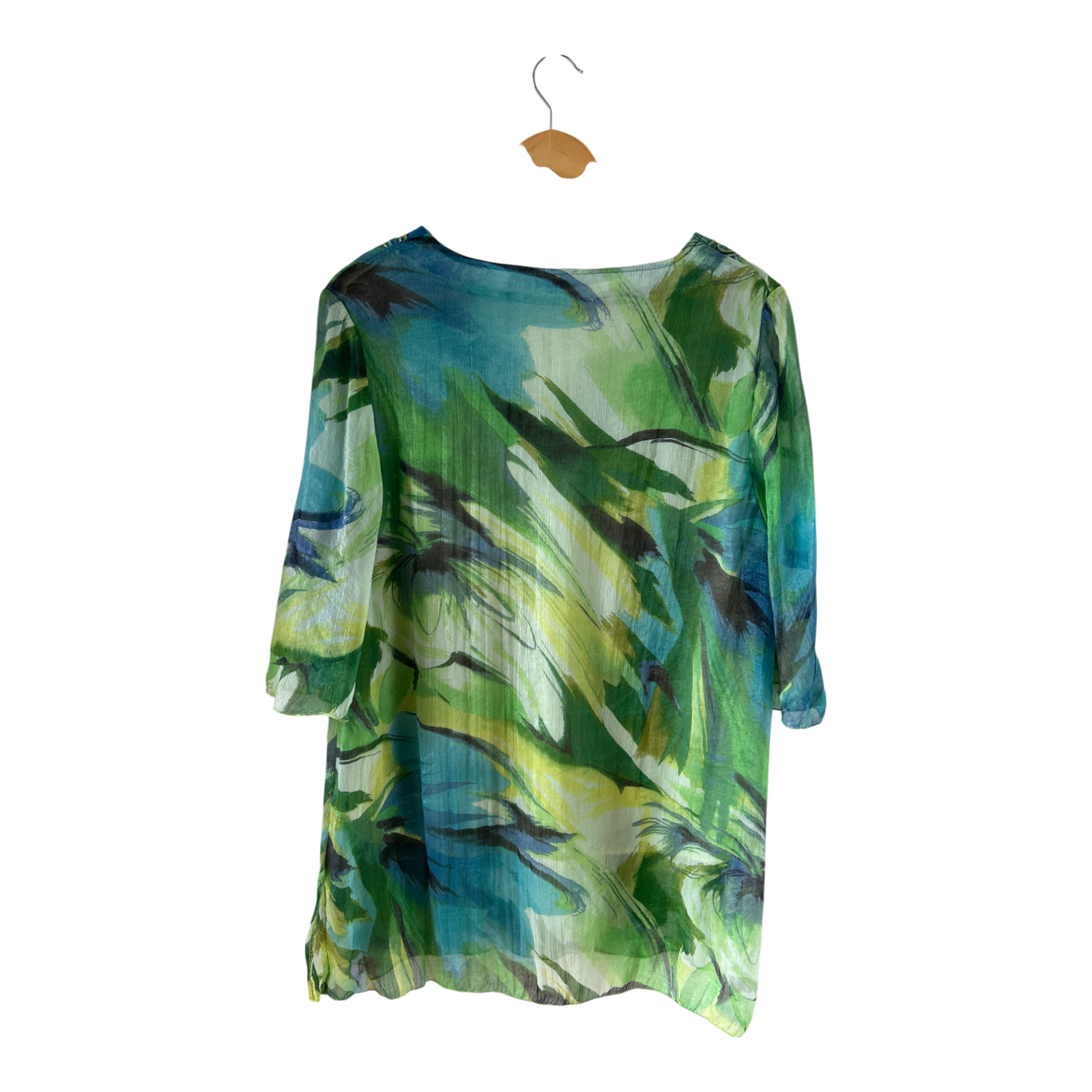 Eder Tunika XXL grün blau mit Stickerei Seidenanteil gefüttert 3/4 Arm elegant