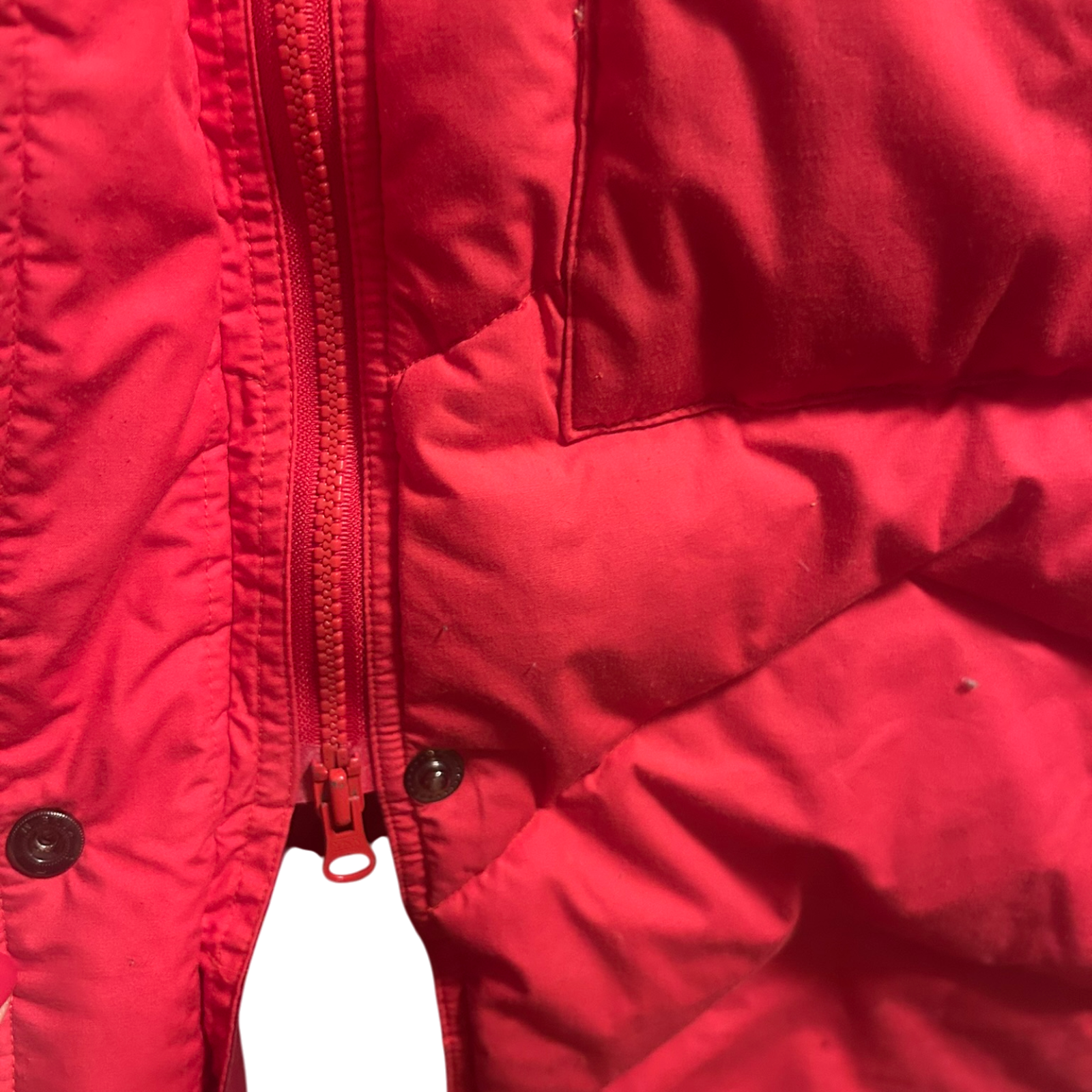 Dieser kräftig rote Daunenmantel von Elho aus den 90er Jahren in Größe 40 ist ein echtes Winterhighlight. Die extrem warme 100% Daunenfüllung sorgt für höchsten Tragekomfort selbst an sehr kalten Tagen. Der Mantel ist lang geschnitten, voluminös und besitzt die charakteristische Retro-Silhouette der frühen 90s.