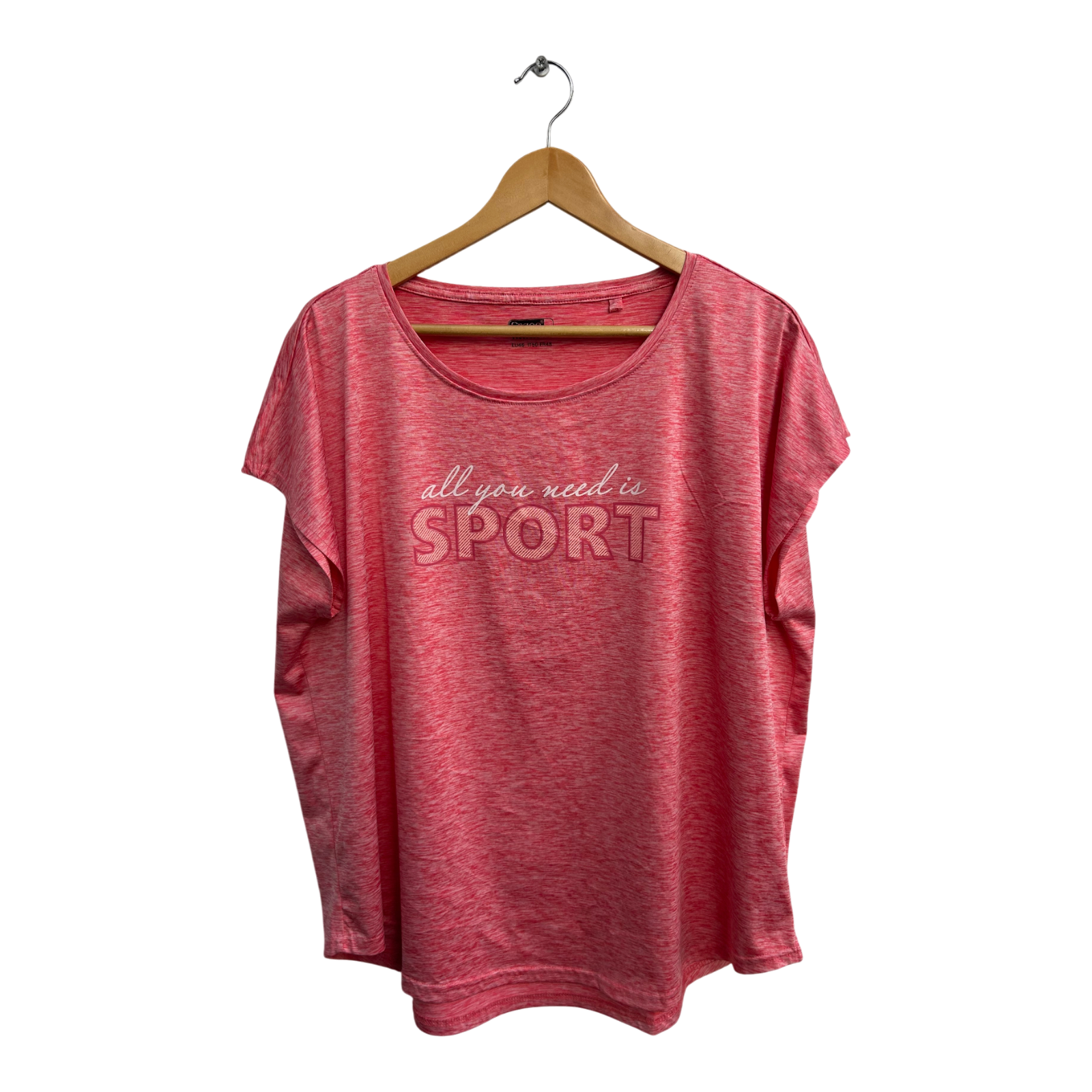 Ergee Shirt Damen Gr 46 Koralle Meliert Stretch Kurzarm Sportshirt Viskosemix