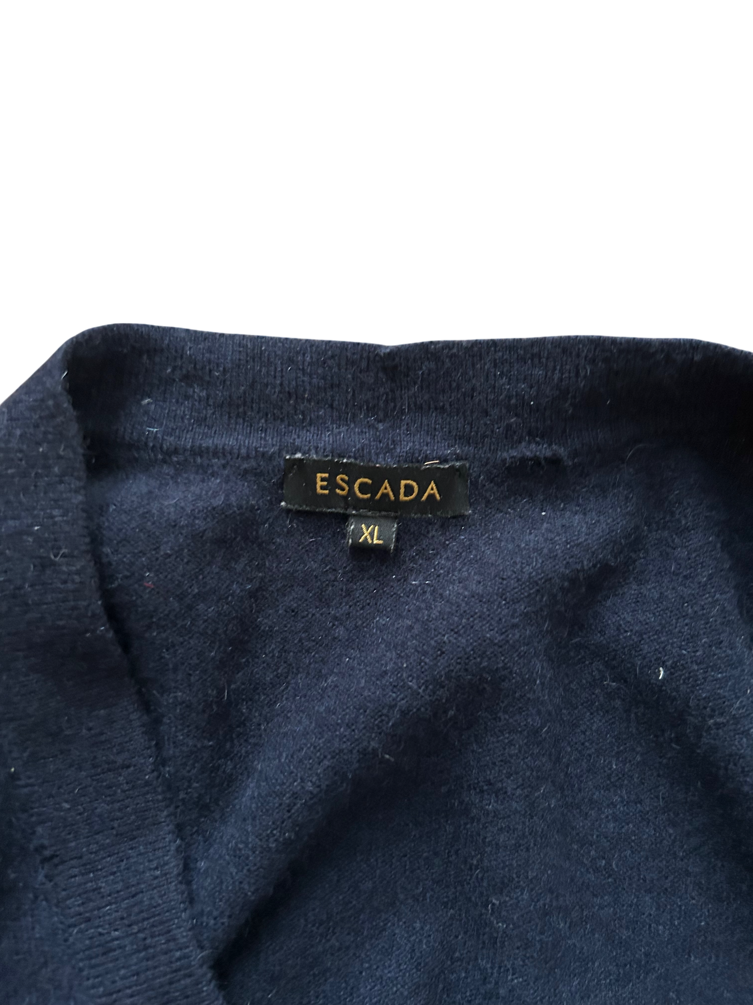 Escada Damen Kaschmir Zweiteiler Gr XL Blau Top Jacke Elegant Luxusstück