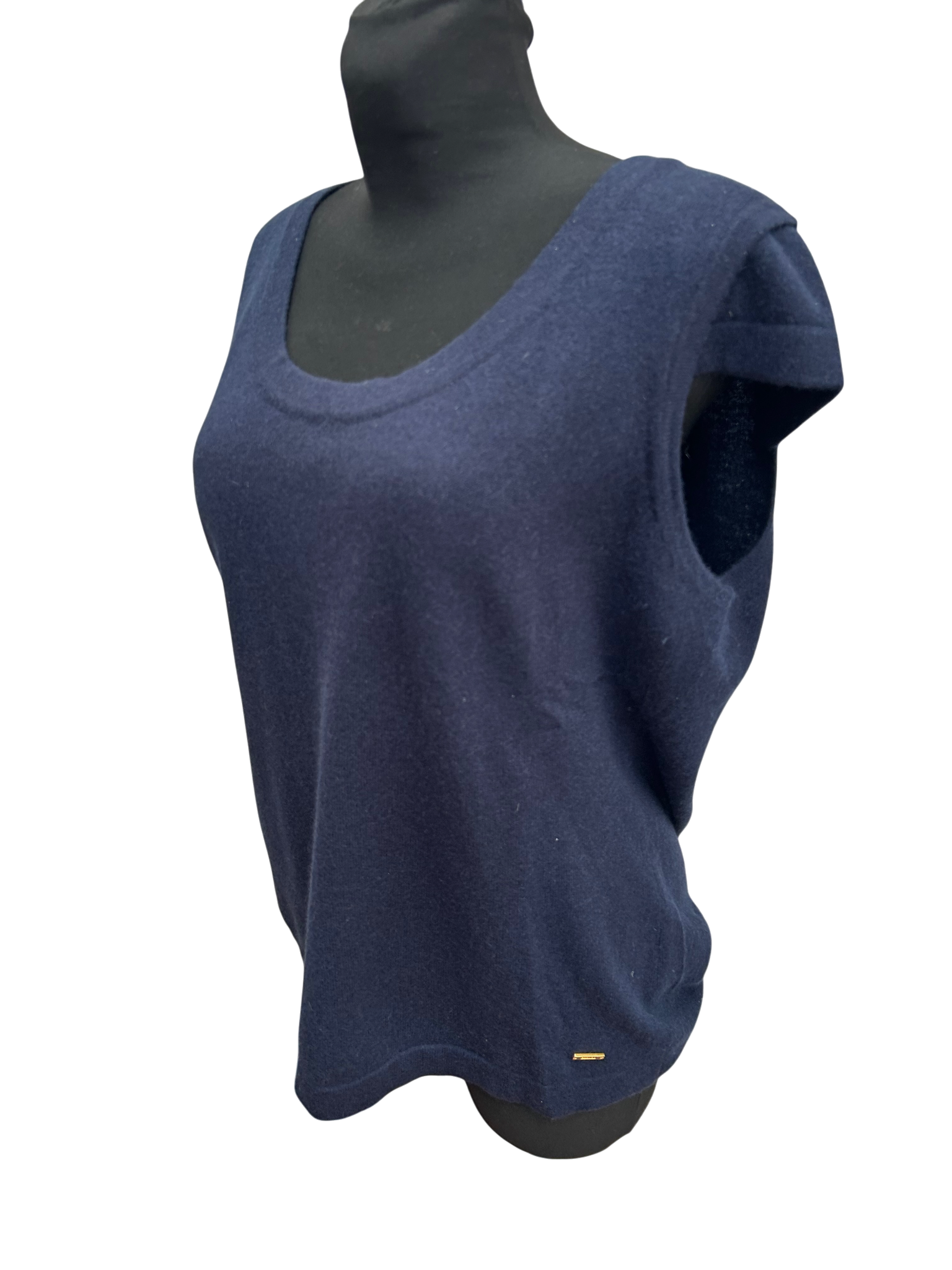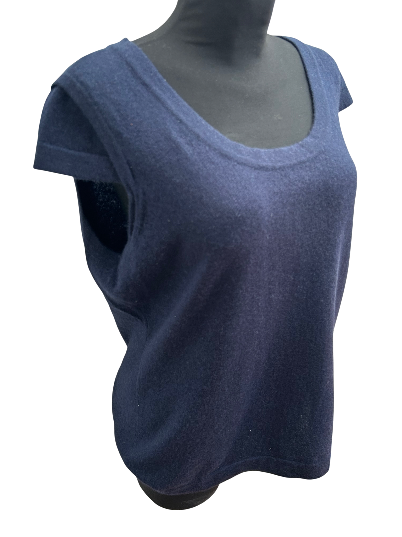 Exklusiver Escada Zweiteiler aus 100% reinem Kaschmir bestehend aus einem ärmellosen Top und einer perfekt abgestimmten zweireihigen Jacke in Größe XL.