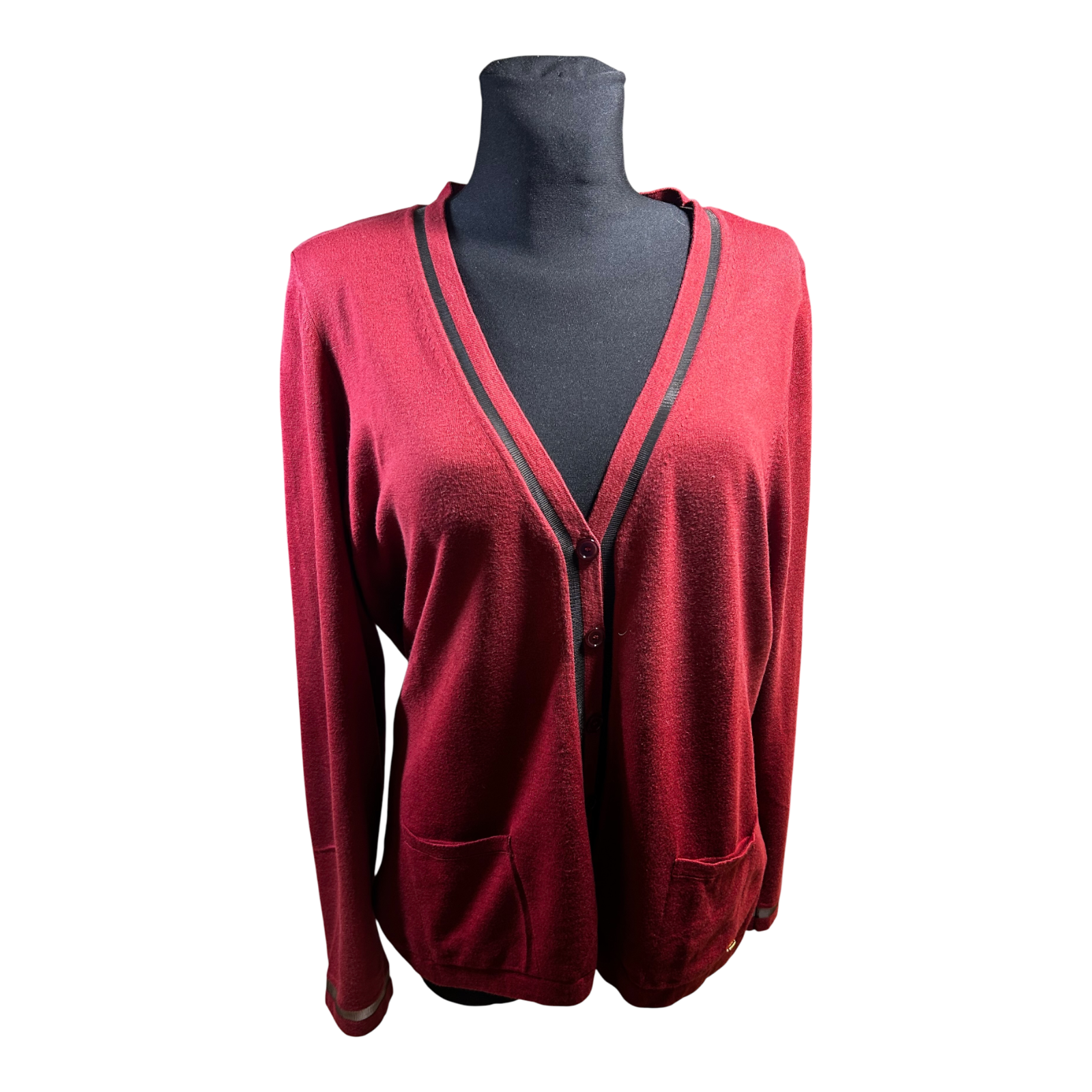 Escada Damen Strickjacke XL Rot Schurwolle Baumwolle Elegant Feinstrick