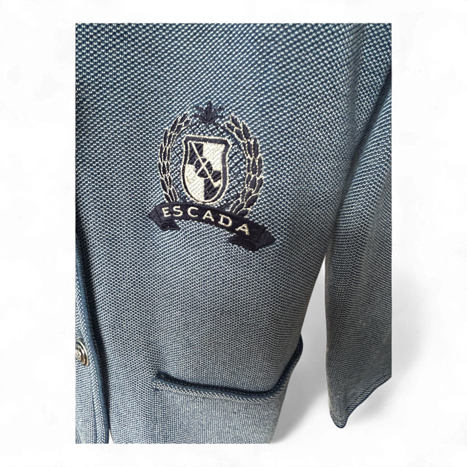 Escada Strickblazer Damen 40 Blau 70 % Schurwolle Wappen Knöpfe Elegant