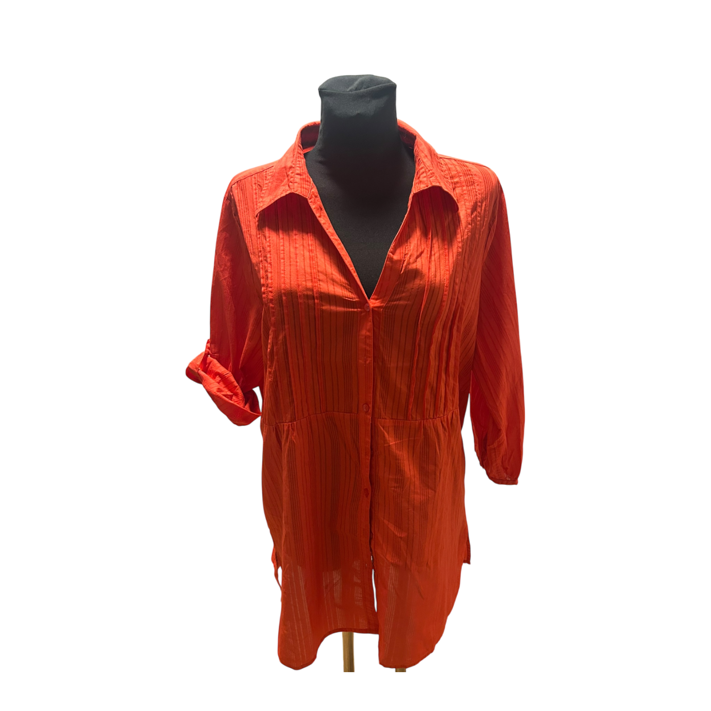 - Besonderheiten: Knopfleiste, Krempelärmel, Leicht Transparent