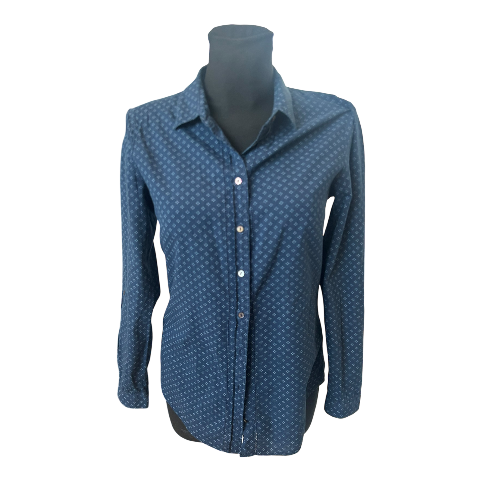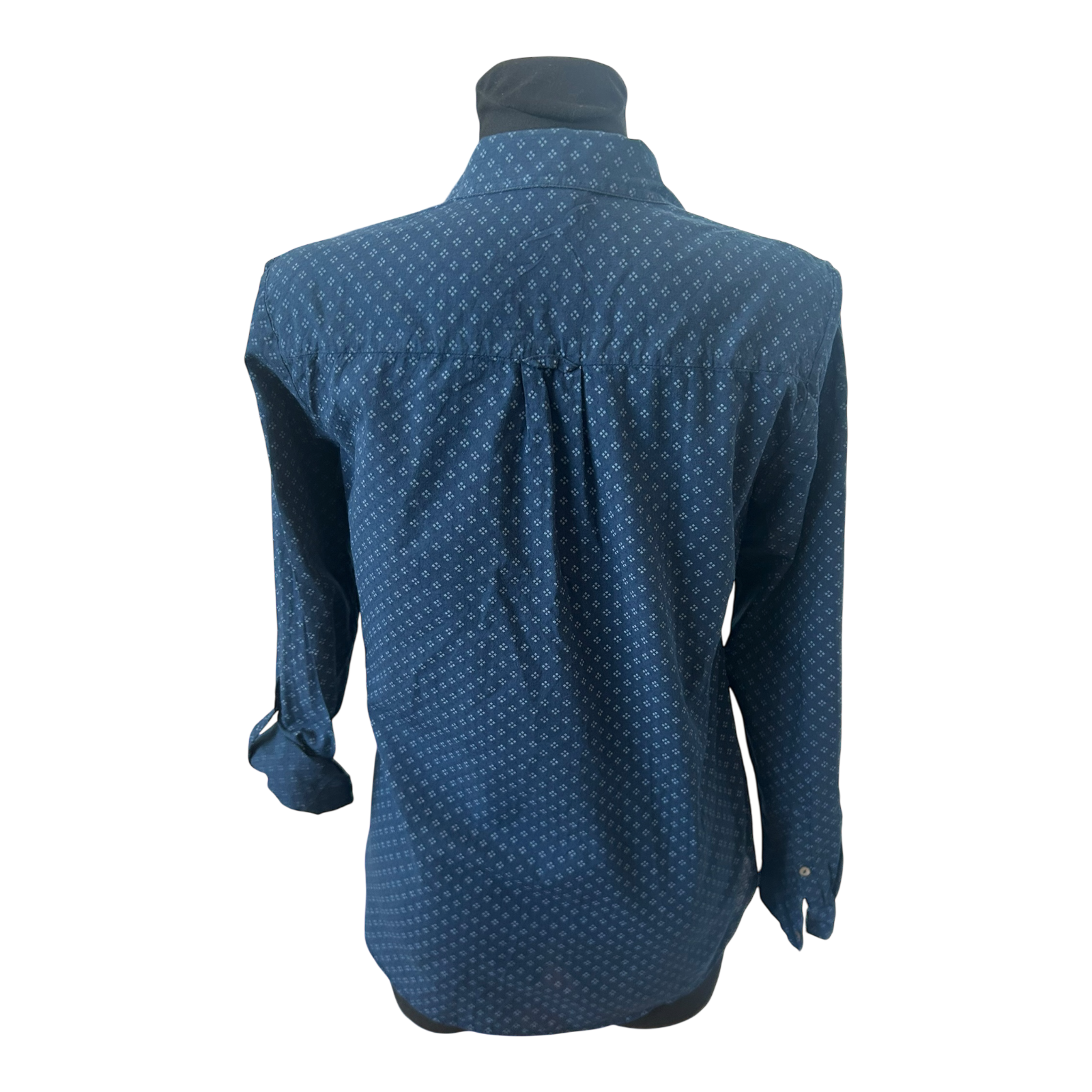 Esprit Damen Bluse Langarm Krempelärmel Gr 36 Blau Gemustert Frühling Sommer